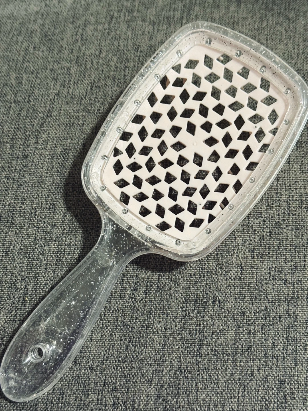 Features a clear handle with sparkles and a soft pink cushion — very comfortable, lightweight, and great for everyday use.
