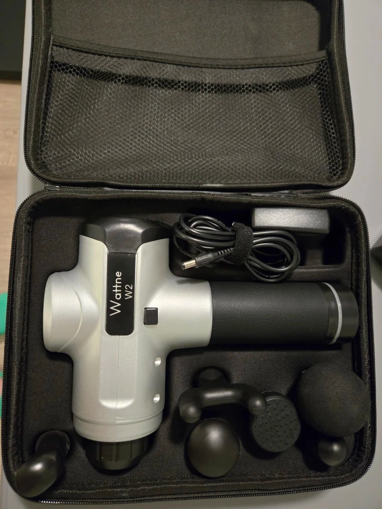 Selling a Wattne W2 massage gun. It comes with its case and various attachments for different massage needs!