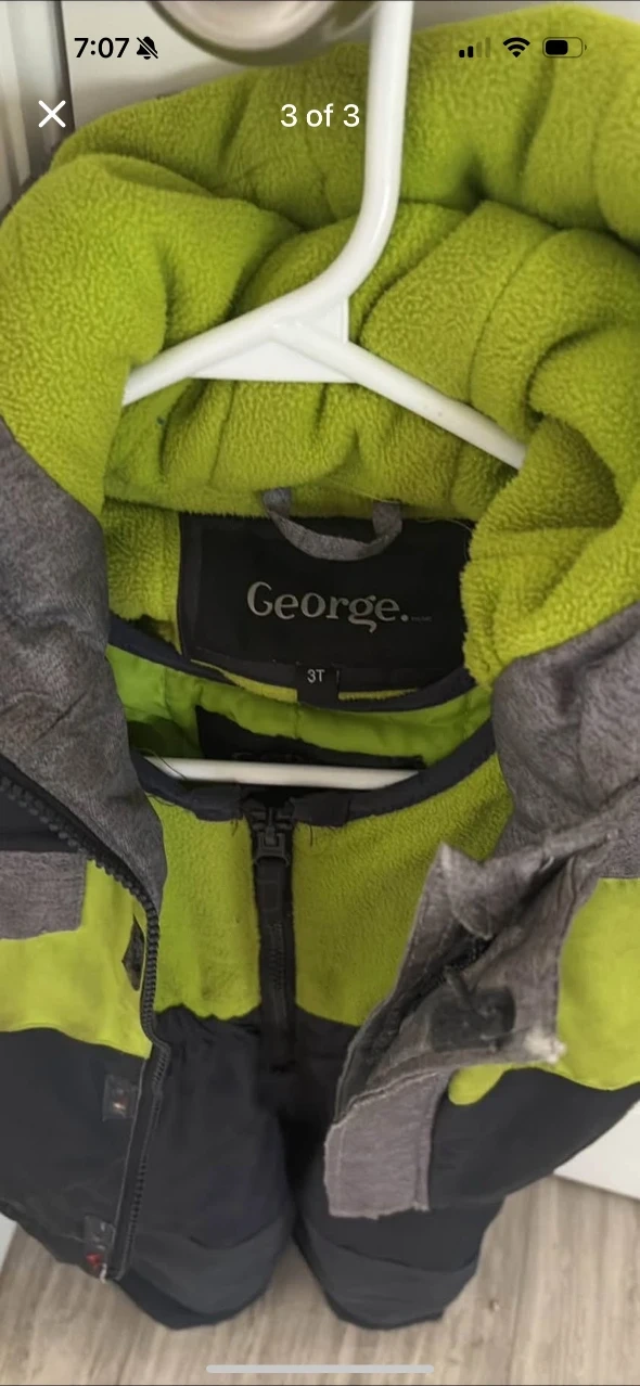 Selling a gently used George brand snowsuit in size 3T. It's a green and black colour combination! Perfect for keeping your little one warm during the winter months