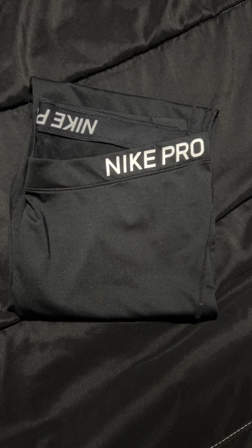 Selling a pair of Nike Pro leggings in black! They're in great condition and ready for your next workout or just lounging around. The Nike Pro waistband adds a sporty touch!
