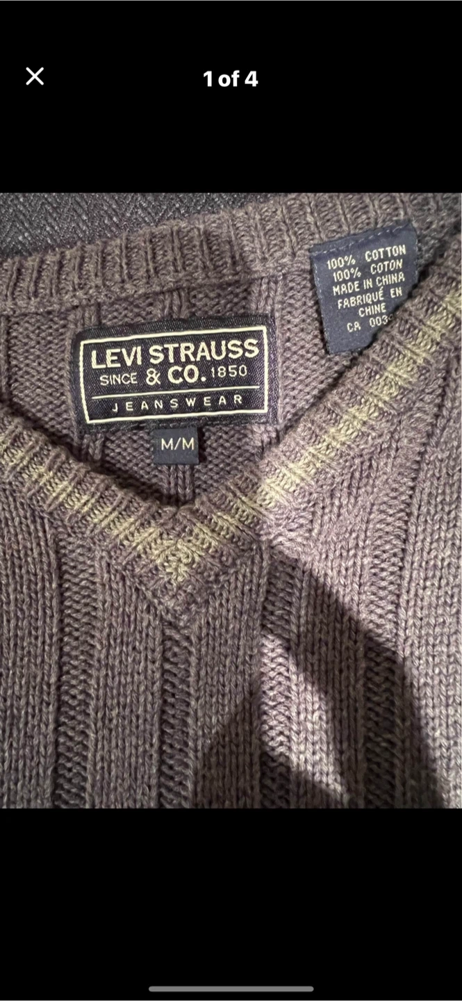 Levi Strauss & Co. sweater vest in size medium. It's a nice navy colour and made of 100% cotton. It's in great condition and ready for a new owner!