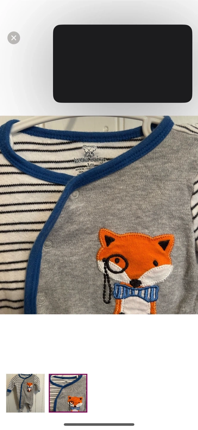 Koala kids brand. Button up sleeper. One side blue striped one side grey with orange fox. Size 3m. Brand new condition