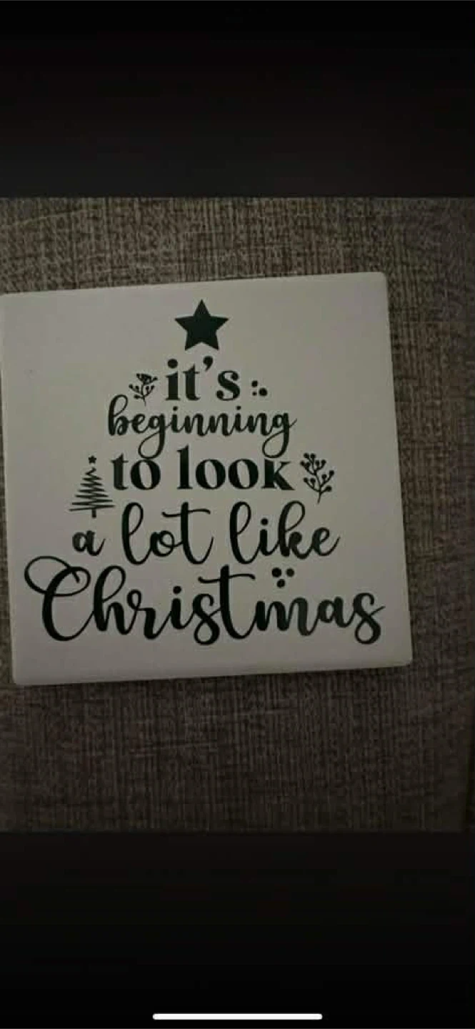 Cute little Christmas decor item with the saying "It's beginning to look a lot like Christmas" Coasters