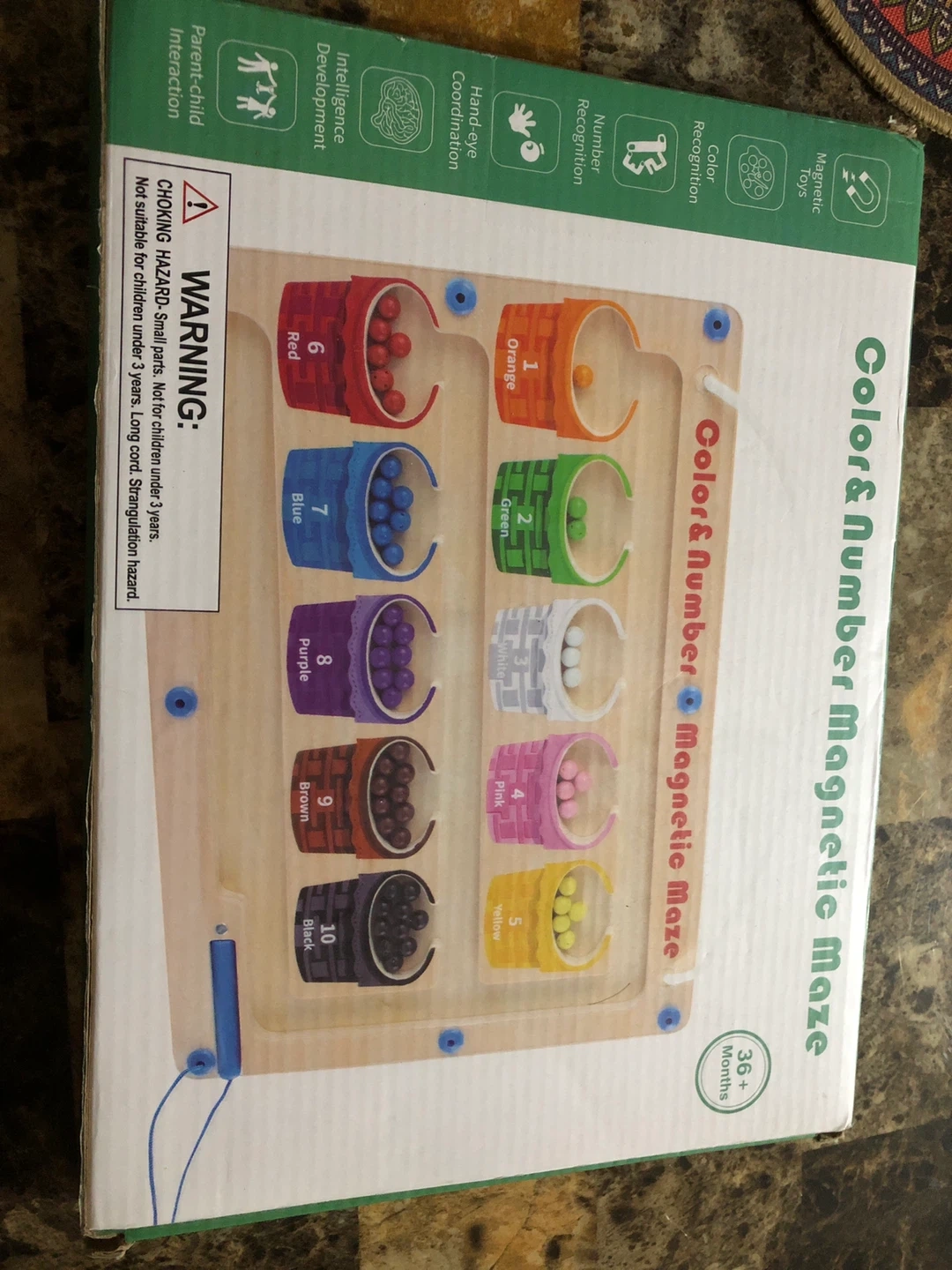 This Color & Number Magnetic Maze is a fun educational toy for kids aged 36 months and up! It helps with number and color recognition, hand-eye coordination, and intelligence development. The maze features strong magnets for precise attachment and a portable handle. Made of wood, it's a great way for parent-child interaction too!