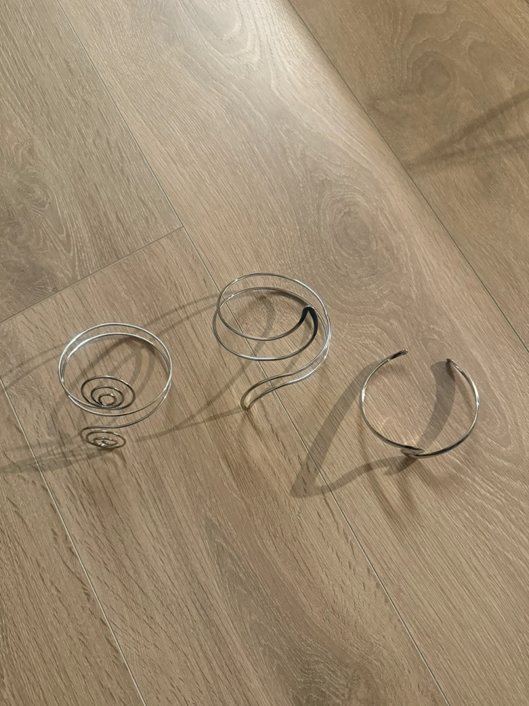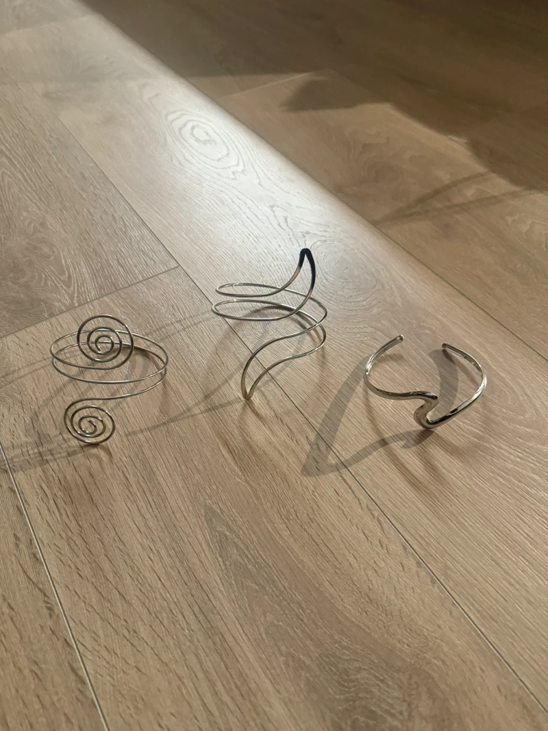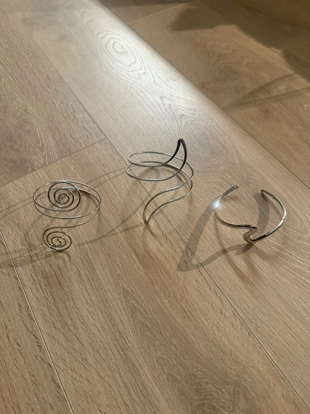 Selling a set of silver arm cuff bracelets. They're in great condition and ready to add a unique touch to your style! Never worn. Selling since im a student.