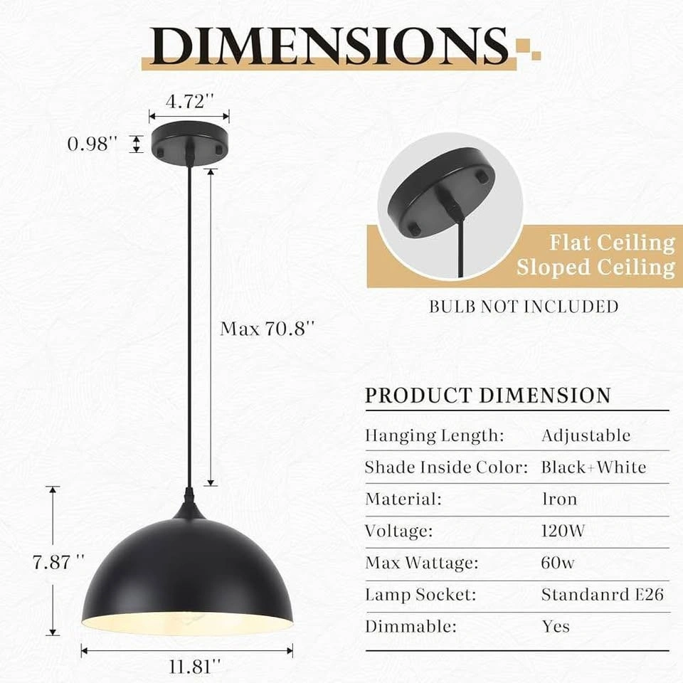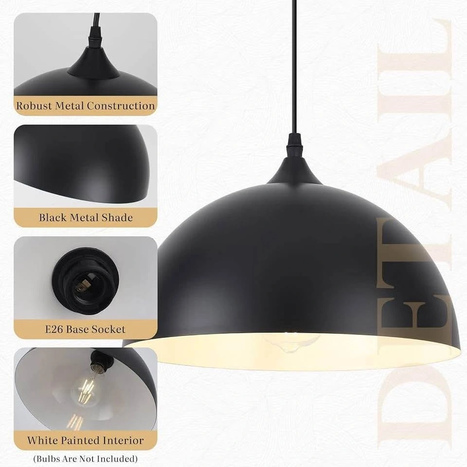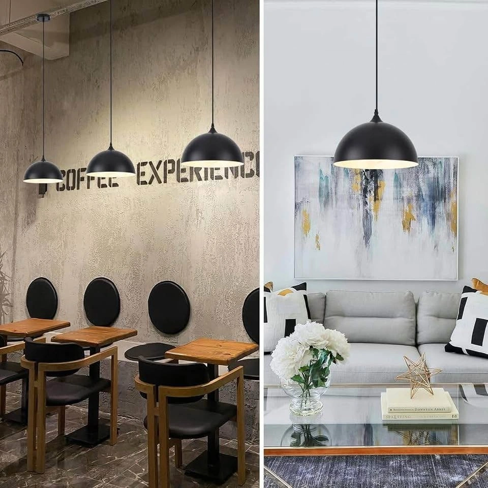 Black Pendant Light, 11.8 inch Black and White Dome...