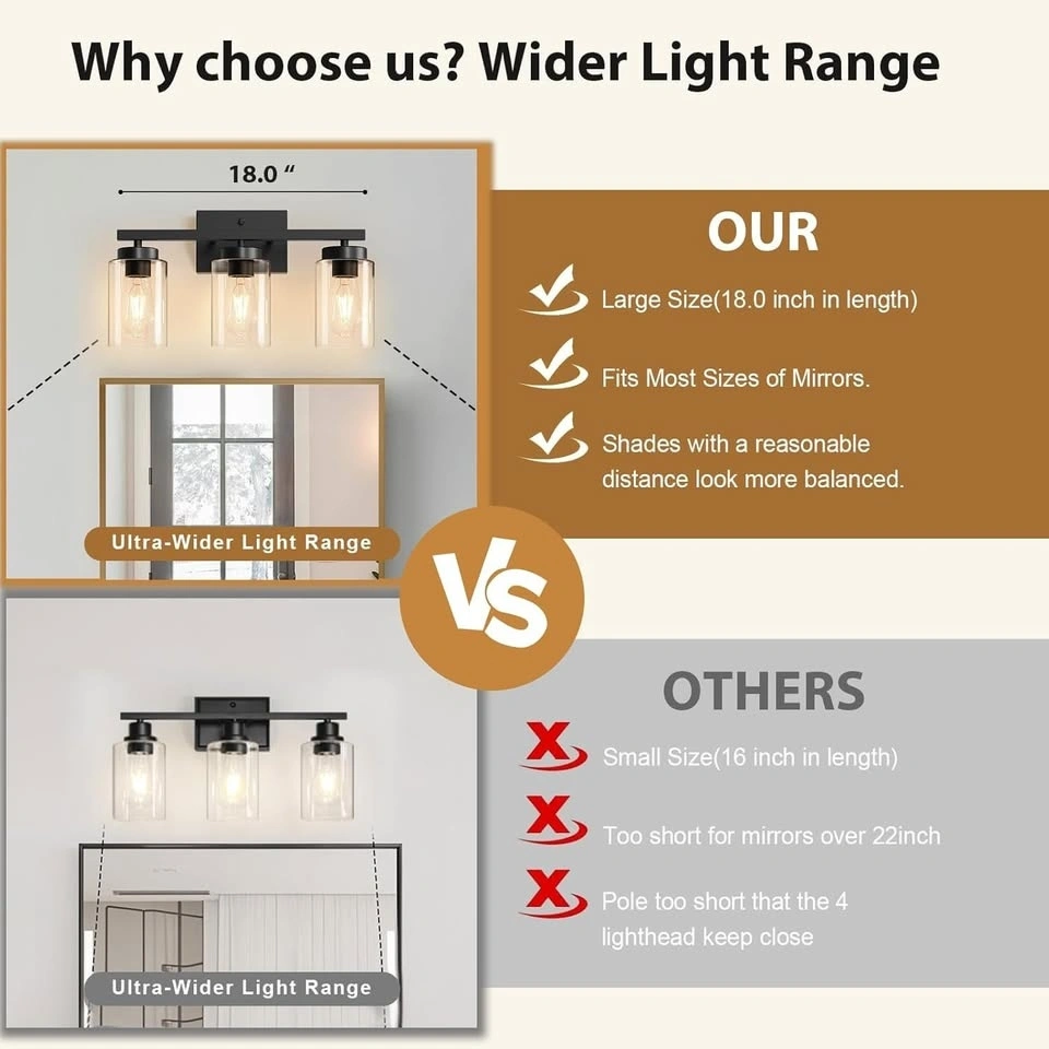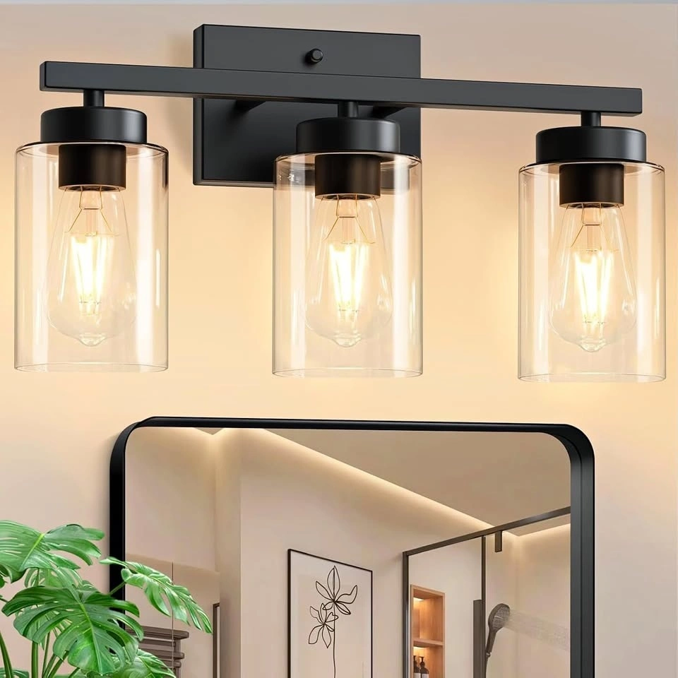 BNIB 3-Light Black Bathroom Vanity Light (Clear Glass Shades)
