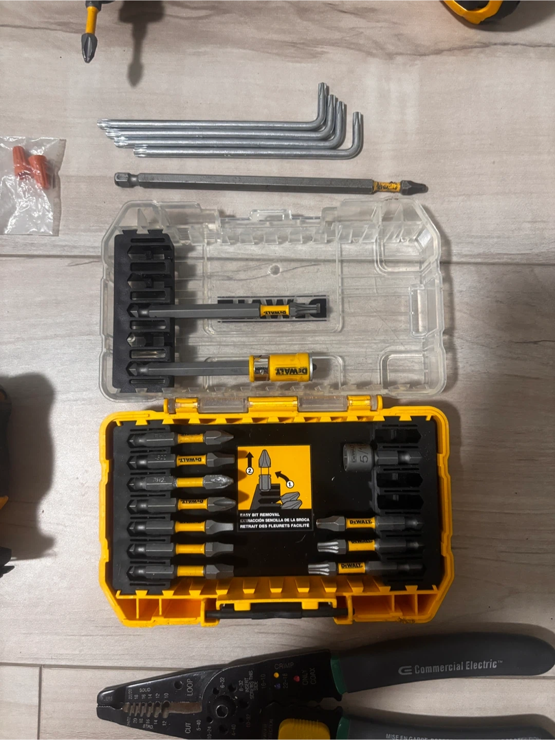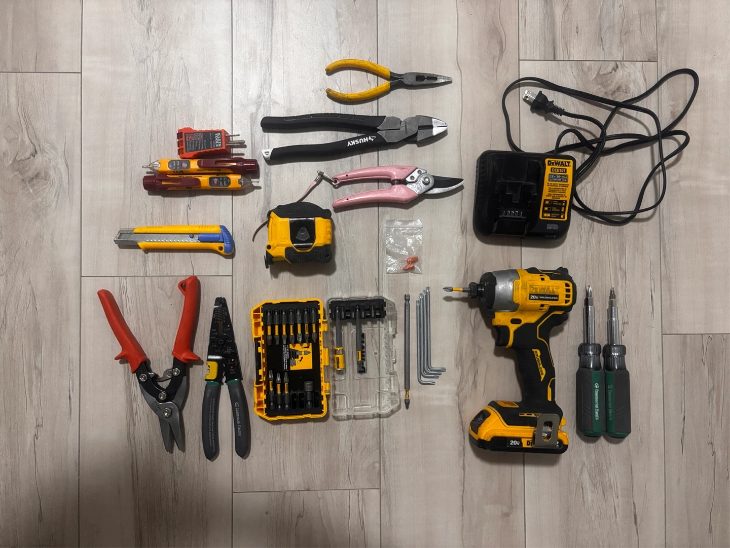 Selling a DeWALT 20V brushless impact driver with battery, charger and bit set included.