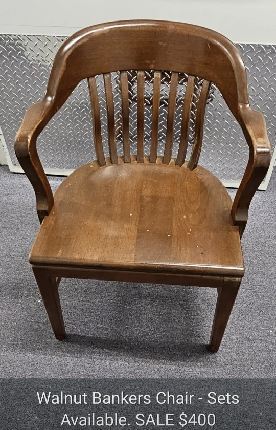 Selling a classic walnut bankers chair. It's a sturdy and stylish piece that would look great in any home office or study. Available as a set.