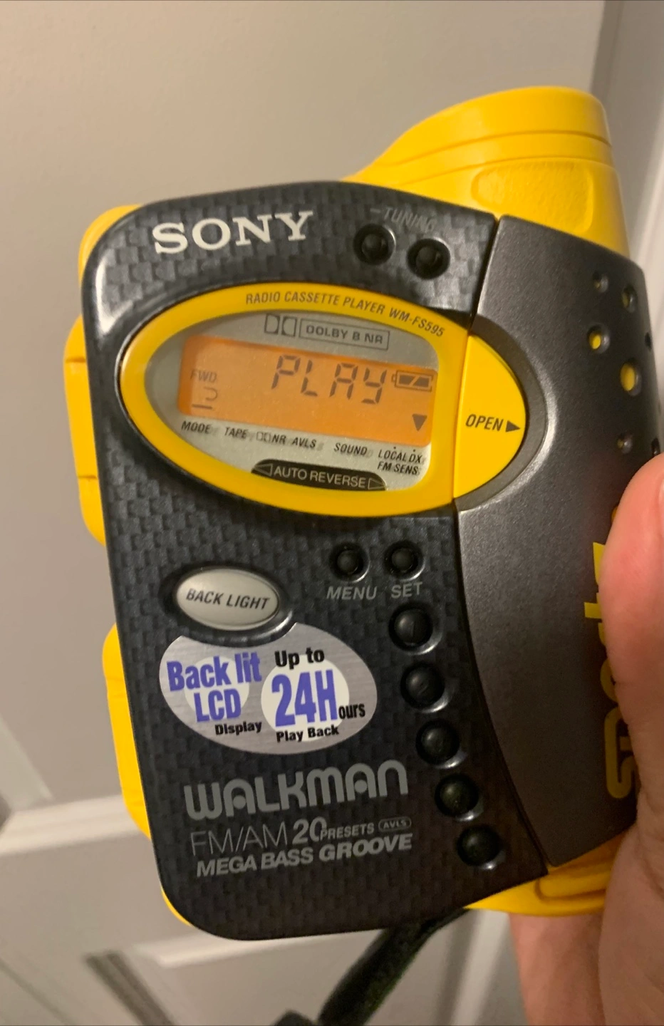 Listen to your favourite cassettes on the go with this rate vintage Sony WM-FS595 Sports Walkman, a portable cassette player with FM/AM radio and Mega Bass Groove feature for enhanced sound. This unit is in great condition.