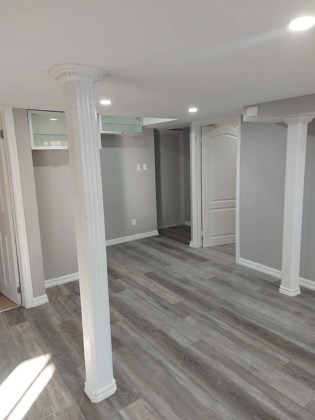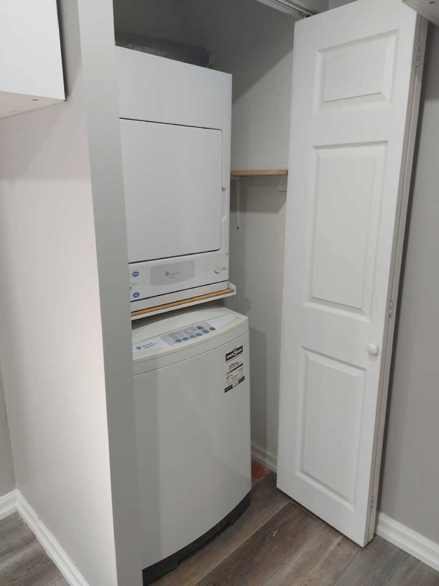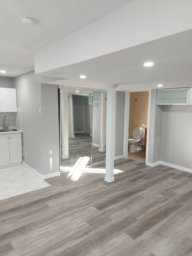 1 bedroom basement for rent. It includes a bathroom, laundry, kitchen, and living room.