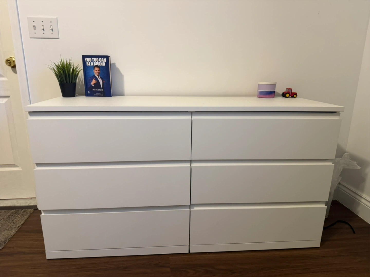 Selling a white IKEA storklinta dresser with six drawers. It's in great shape and ready for a new home. This dresser offers lots of storage space and a clean, classic look that fits well in any bedroom
