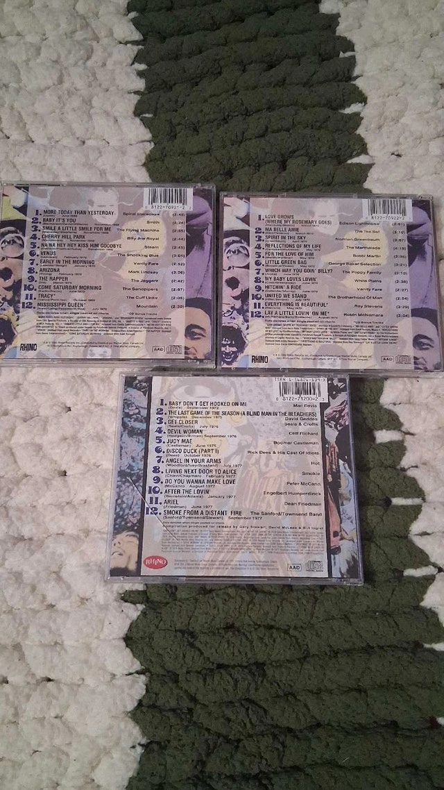 Selling my used like new super hits of the 70s have a nice day cds includes vol 1, 2 and 20 some cases cracked asking $30 cash and pick up only