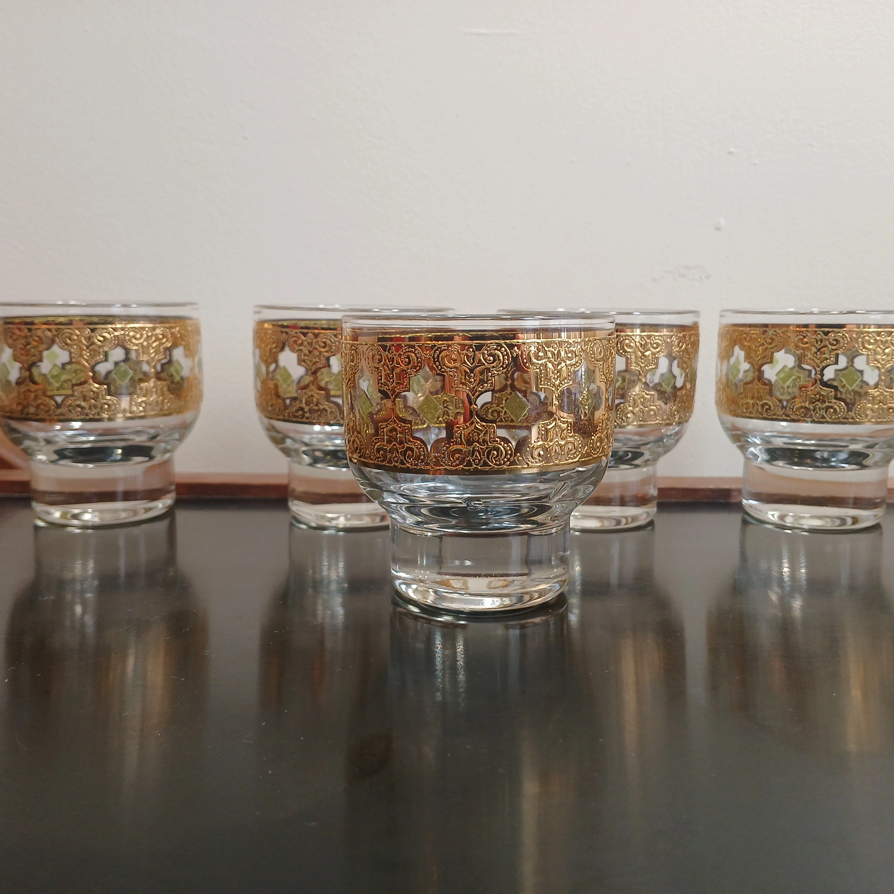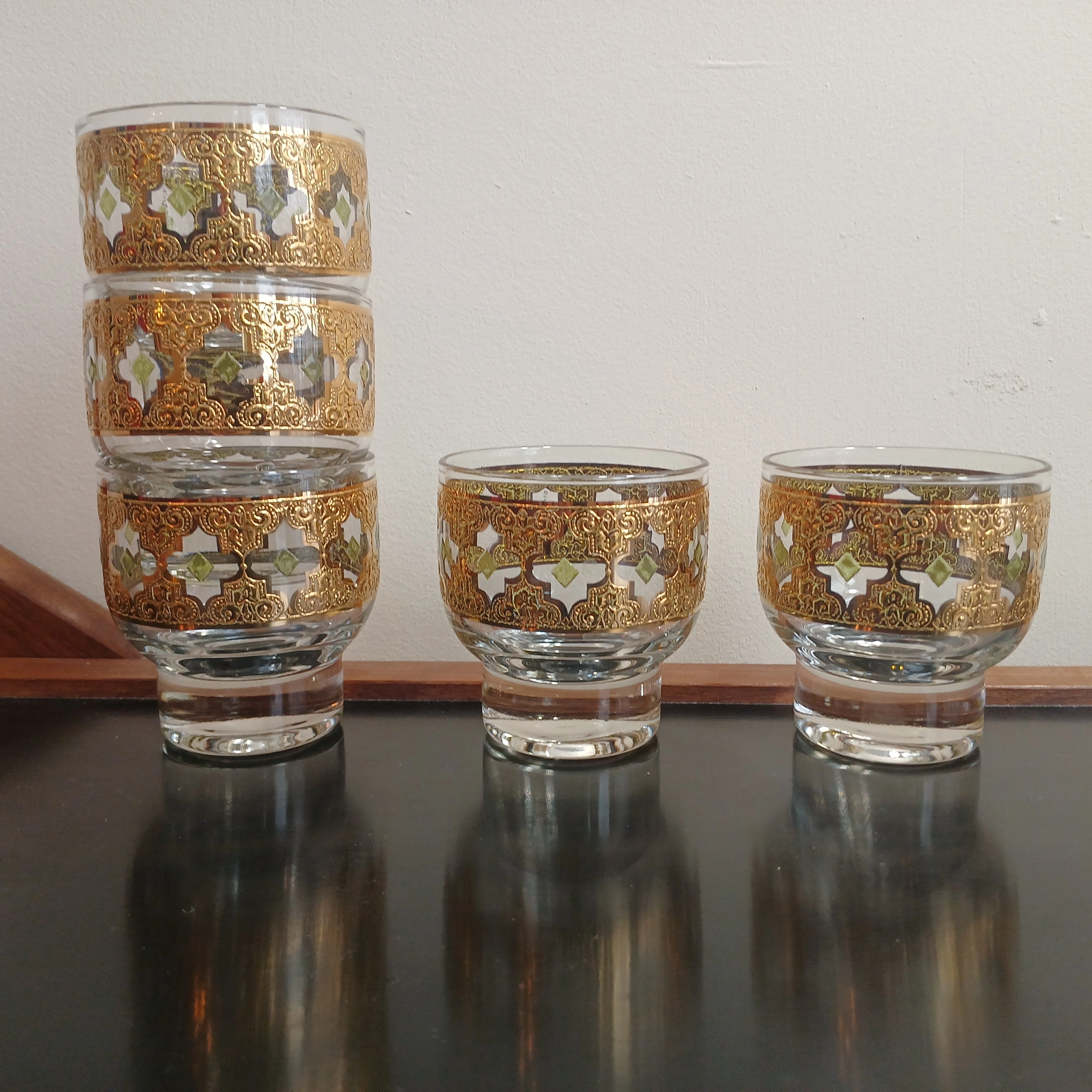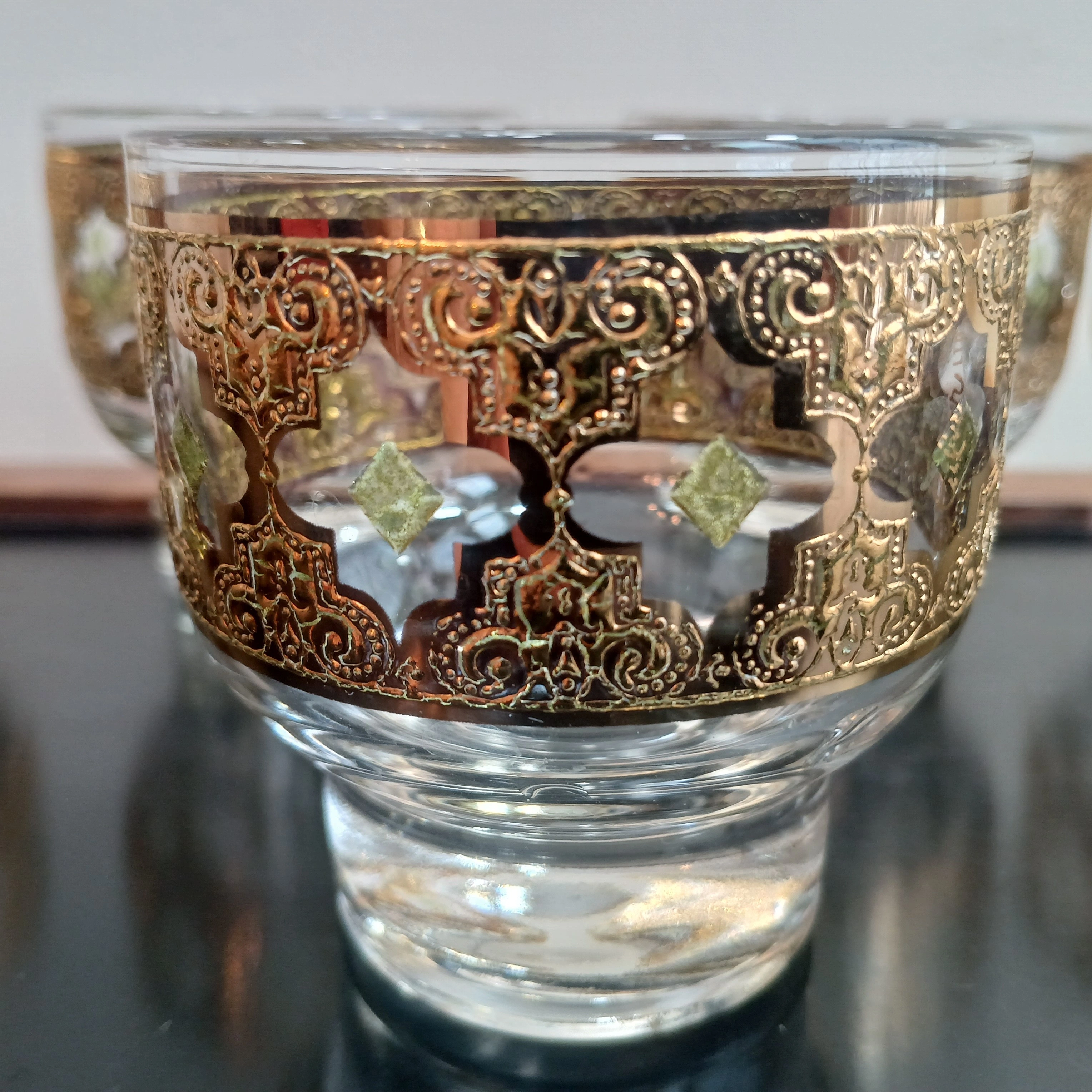 Culver Valencia 22k Gold and Green Cocktail Glasses