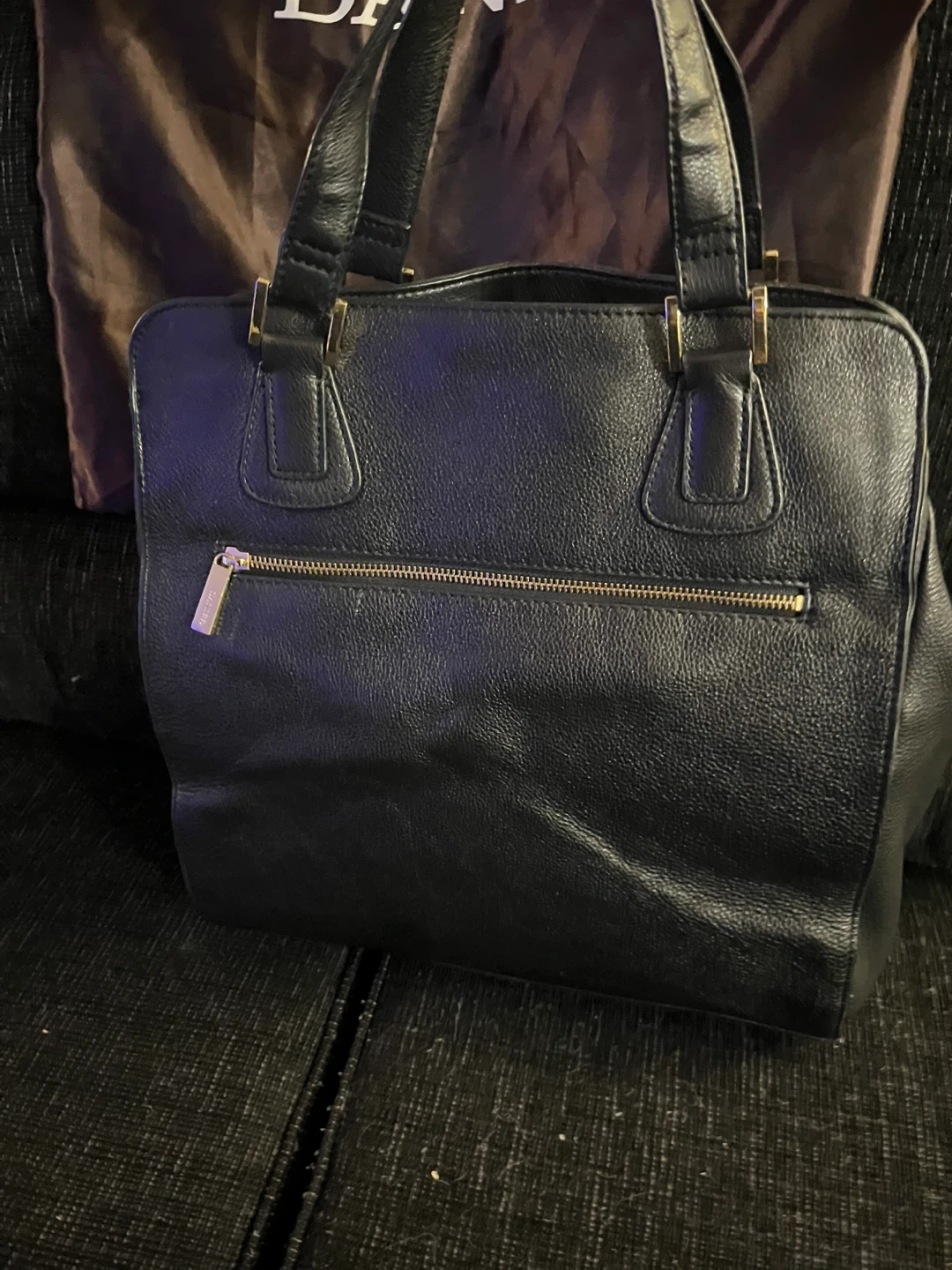 Absolutely gorgeous Classic black leather briefcase carry all bag by DANIER! Easily fits a small laptop & anything else needed for the office, day trip or use it for carry on luggage. Tons of interior pockets to keep you organized.