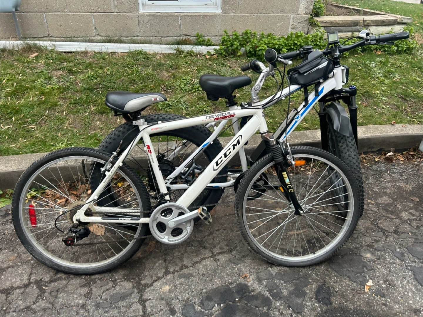 Selling a fat tire electric bike! It's in good condition and ready for some fun rides. Perfect for all terrains, whether it's snow, sand, or trails. Comes with Kryptonite lock, Phone holder, Alarm, Uber bag. All FREEInstalled new brakes. Another cycle needs some repairs FREE