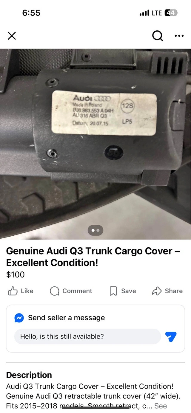Genuine Audi OEM original privacy cargo trunk blind cover roll. black 2015 2016 2017 2018 Audi Q3 8U. This retails new for over $1500.00. Excellent condition to replace your damaged, or missing cover. Not aftermarket junk, factory authentic part 2015 2016 2017 2018