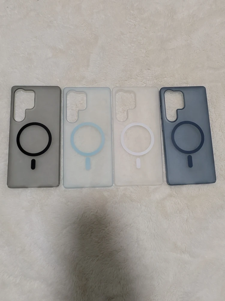 Selling phone cases designed for Samsung 25 ultra, each equipped with MagSafe compatibility. The colours are grey, light blue, white and dark blue. They're in great condition and ready to protect your phone!