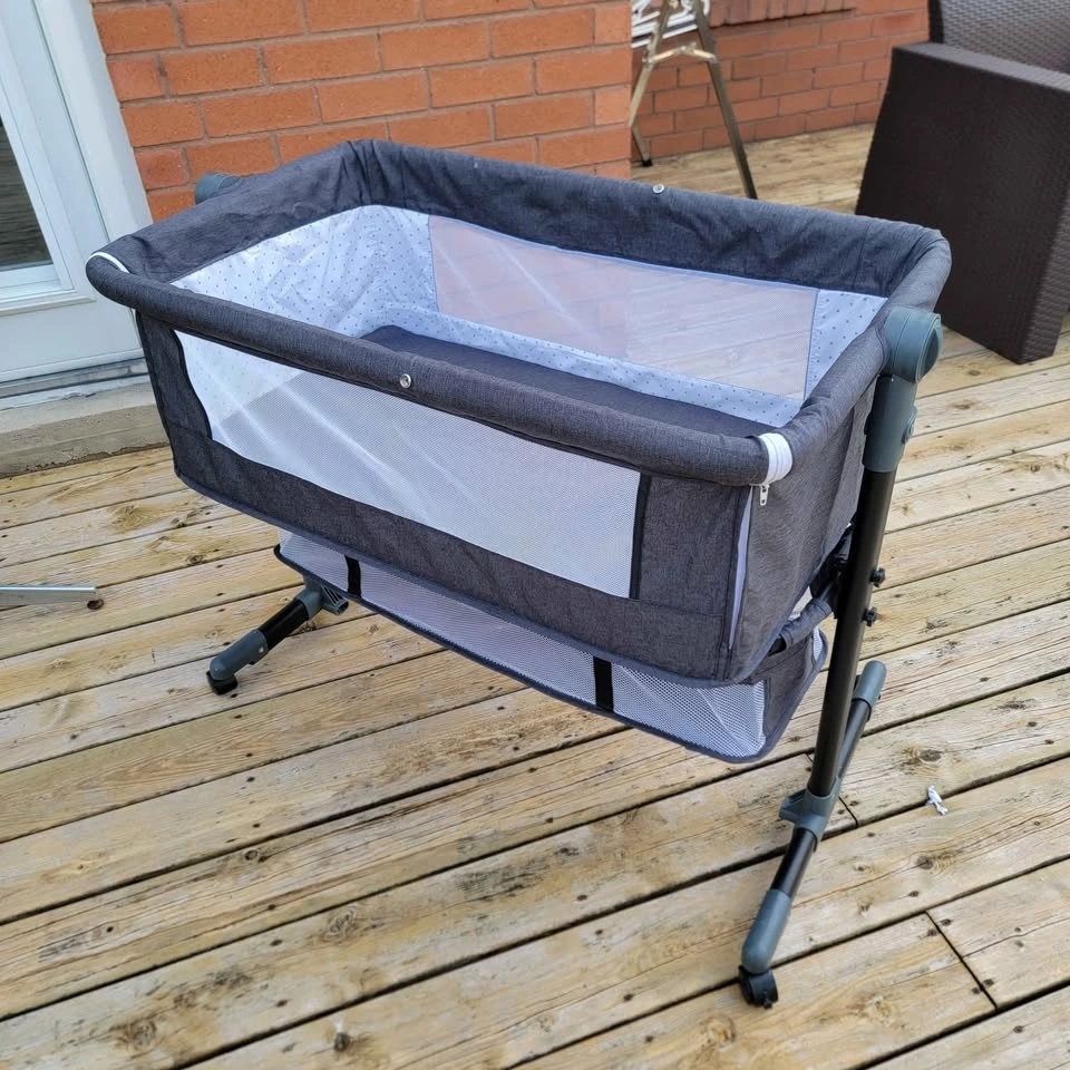 Hi I am selling this Portable Bassinet & Bedside Sleeper. It is in Perfect Condition. Comes will all the attachments. The bed side sleeper can fit most beds, as its height can be adjusted from 29.5" to 35.5" 6 Adjustable Heights. Comes with Travel Bag