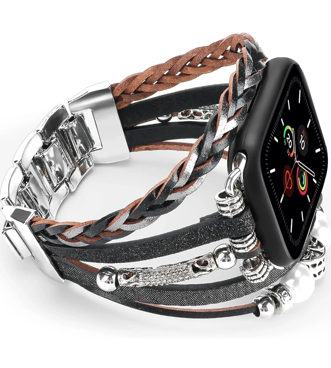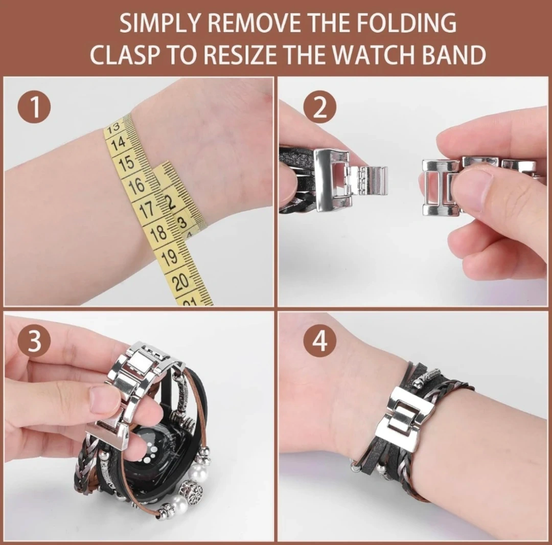 Luxury Leather Bands Compatible With Apple Watch 42mm. Stylish Apple Watch band with a unique design! Bracelet Multilayer Jewelry Wrap Strap with Adjustable Metal Clasp.