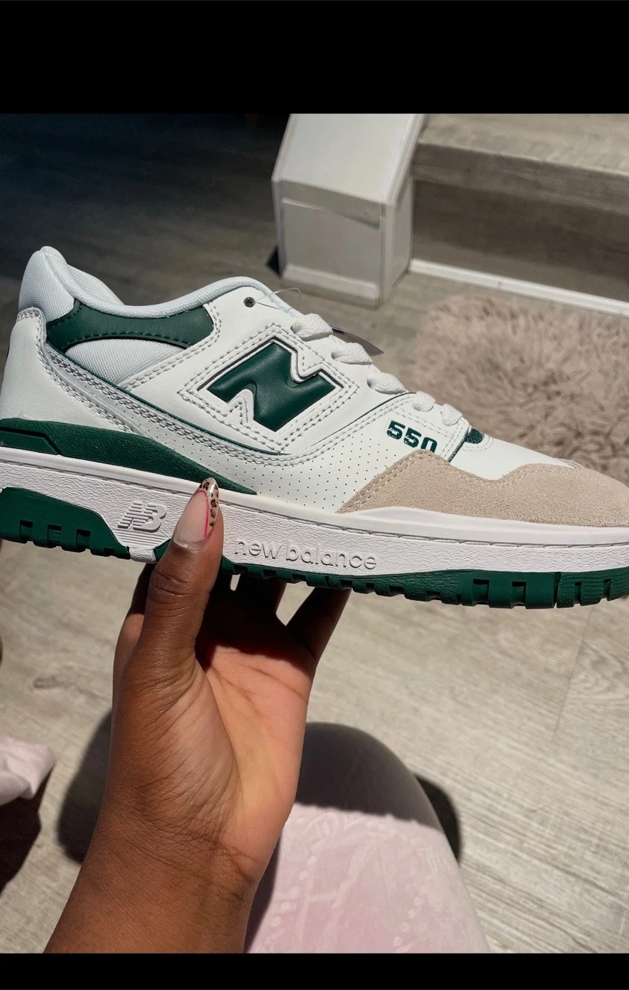 Selling a pair of New Balance 550 sneakers in a stylish white and green colourway! These shoes are in great condition and ready for a new owner. Perfect for adding a touch of sporty flair to your everyday look!