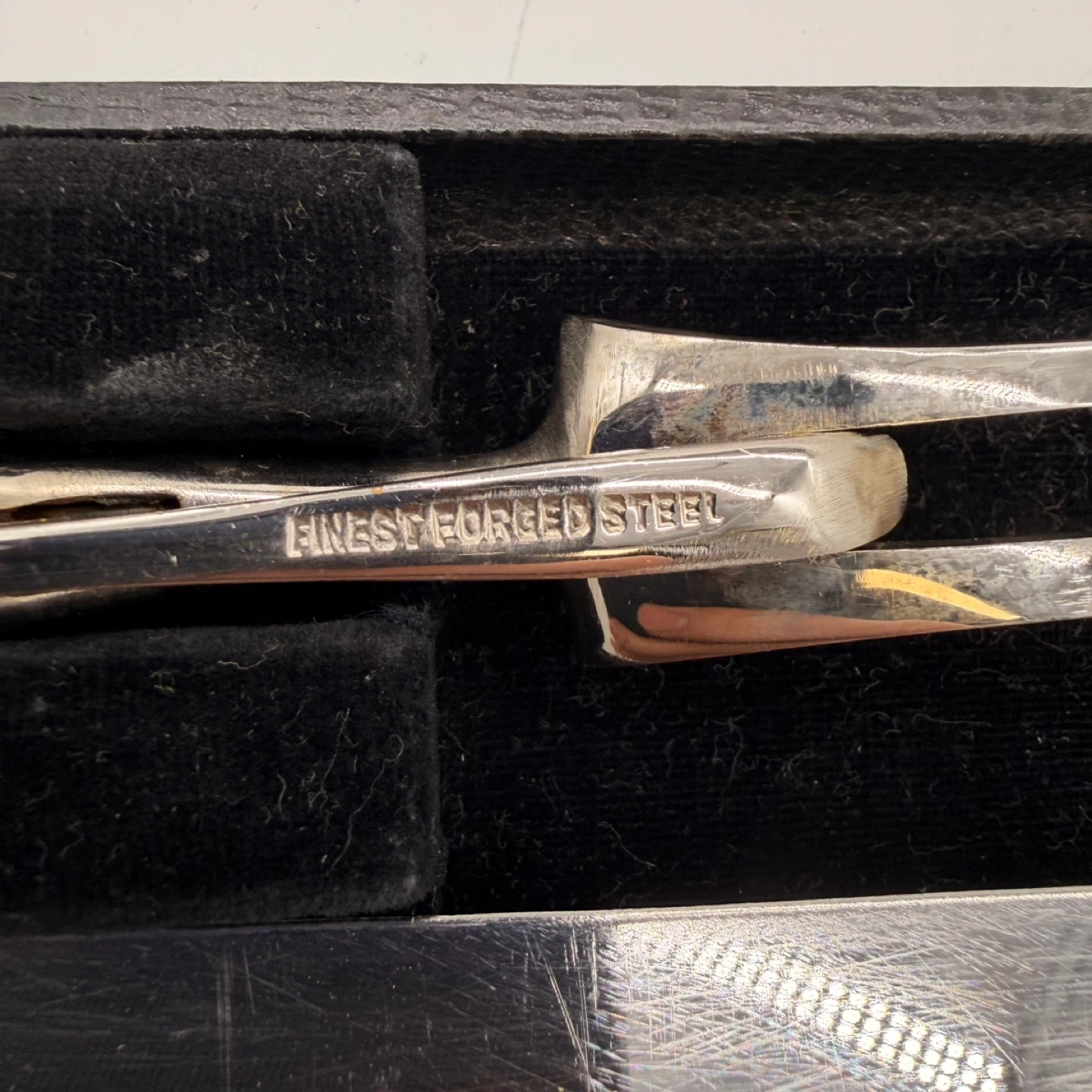 The blades are stamped “Finest Forged Steel.” A classic high-quality serving set perfect for holiday dinners, collectors, or elegant display.