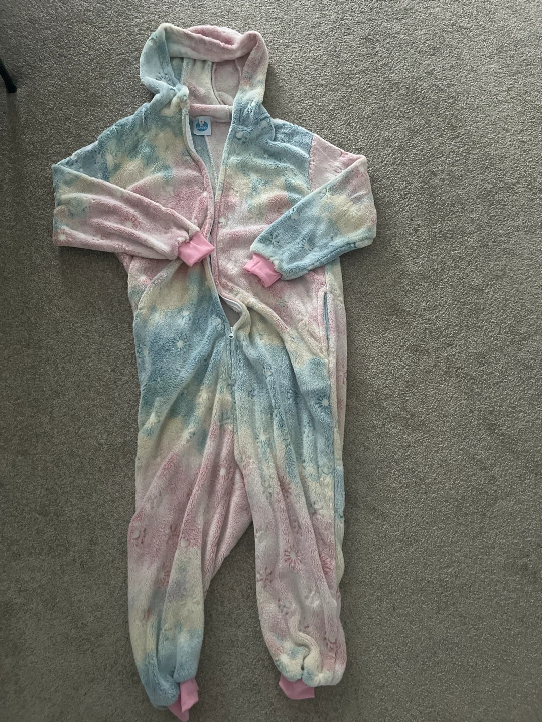 Selling a super comfy SweetXin onesie! It's a size small and features a cute pastel tie-dye pattern with little paw prints. Perfect for lounging around the house on a chilly day! Smoke and pet free home 🏠