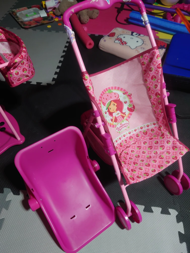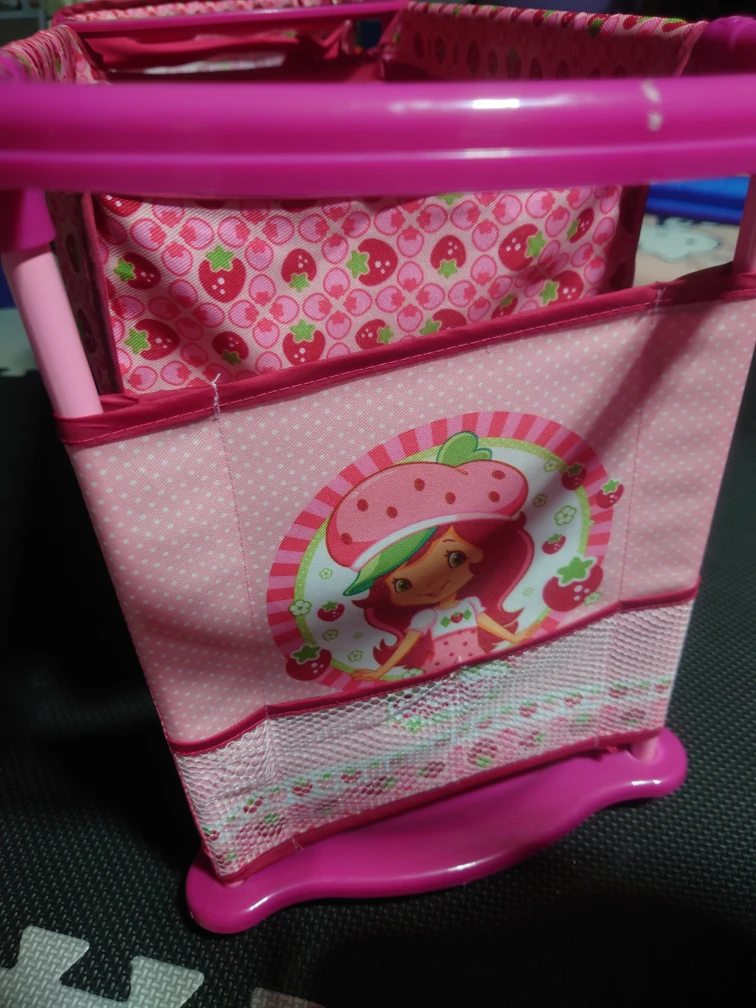 Selling a cute Strawberry Shortcake themed doll stroller and bassinet. It's in great condition and perfect for little ones who love playing with dolls!