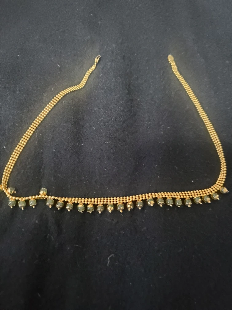 Free. Selling a delicate gold tone necklace with small green beads. It's in great condition and would make a lovely addition to any outfit! Needs a clasp.