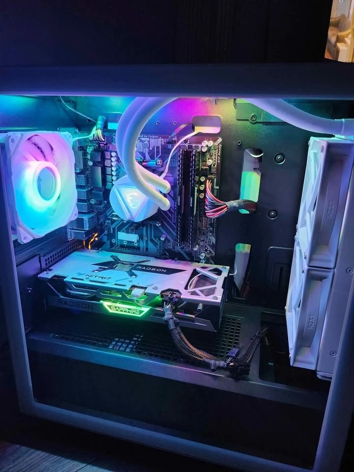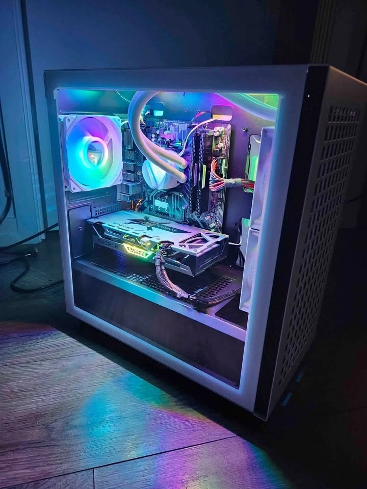 Beautiful, compact white themed computer with 240 MM AIO from msi, new DeepCool case, fast Radeon GPU and ryzen cpu, with ARGB. Computer is clean, fully working, fresh copy of Windows 11!