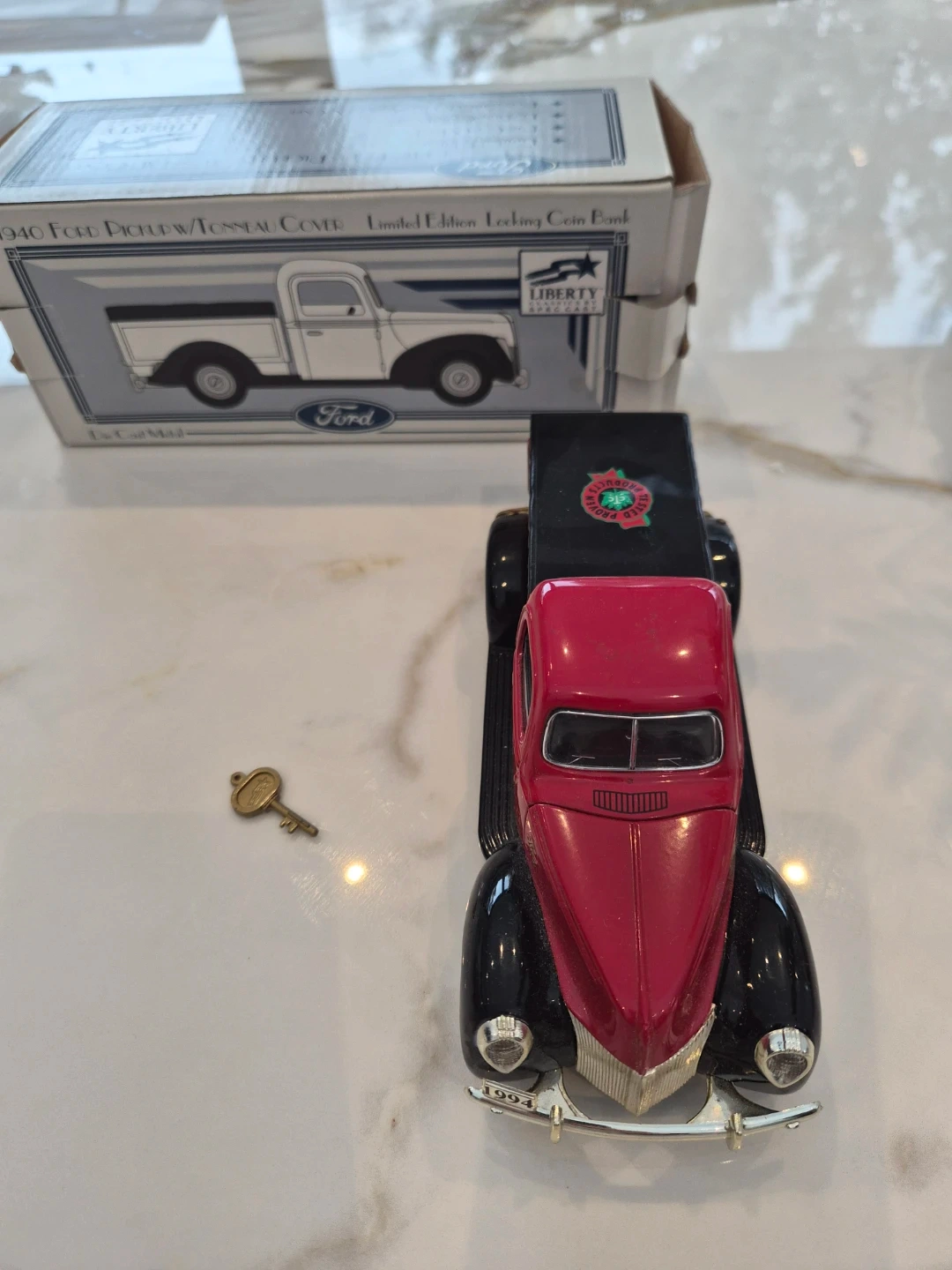 Selling a Liberty Classics Spec Cast 1940 Ford Pickup with Tonneau Cover! It's a limited edition die-cast metal locking coin bank, recommended for ages 8 and over. This is a 1/25th scale model. The box is included! Brand New.