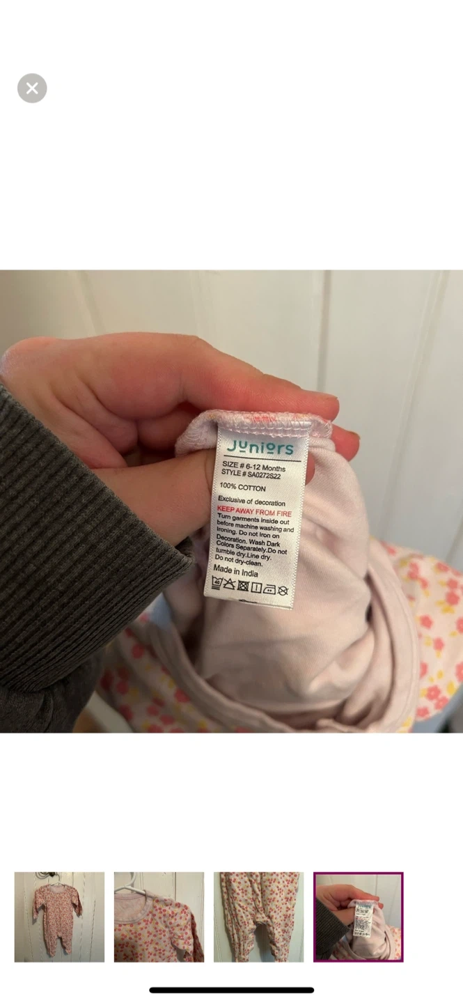 Juniors brand. Long sleeve sleeper with crotch snaps. Pink floral. Size 6/12m. Brand new condition