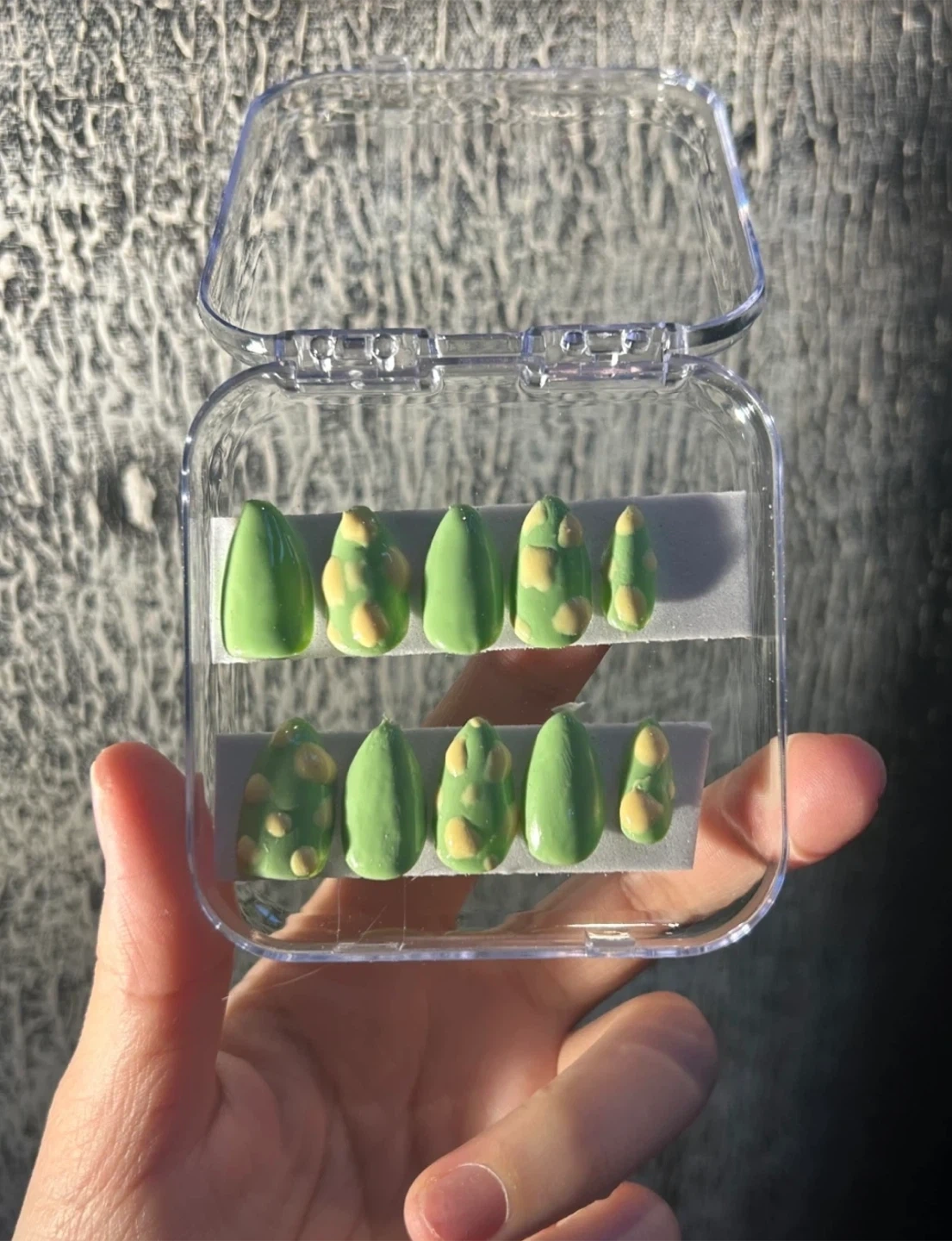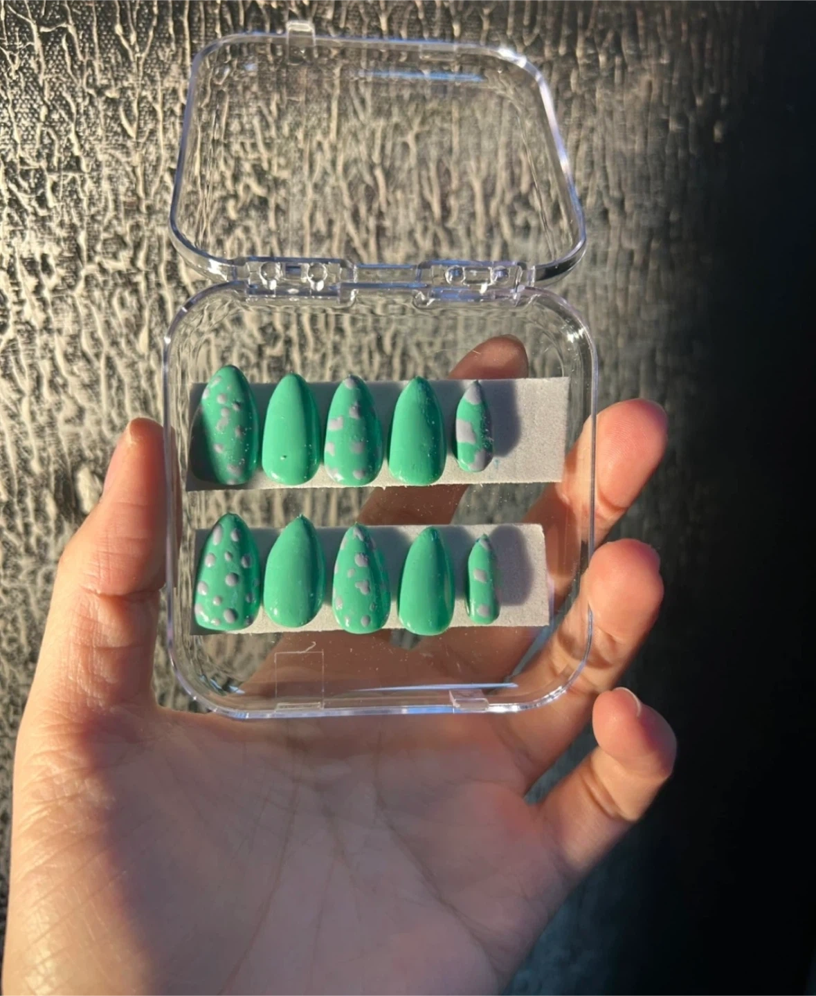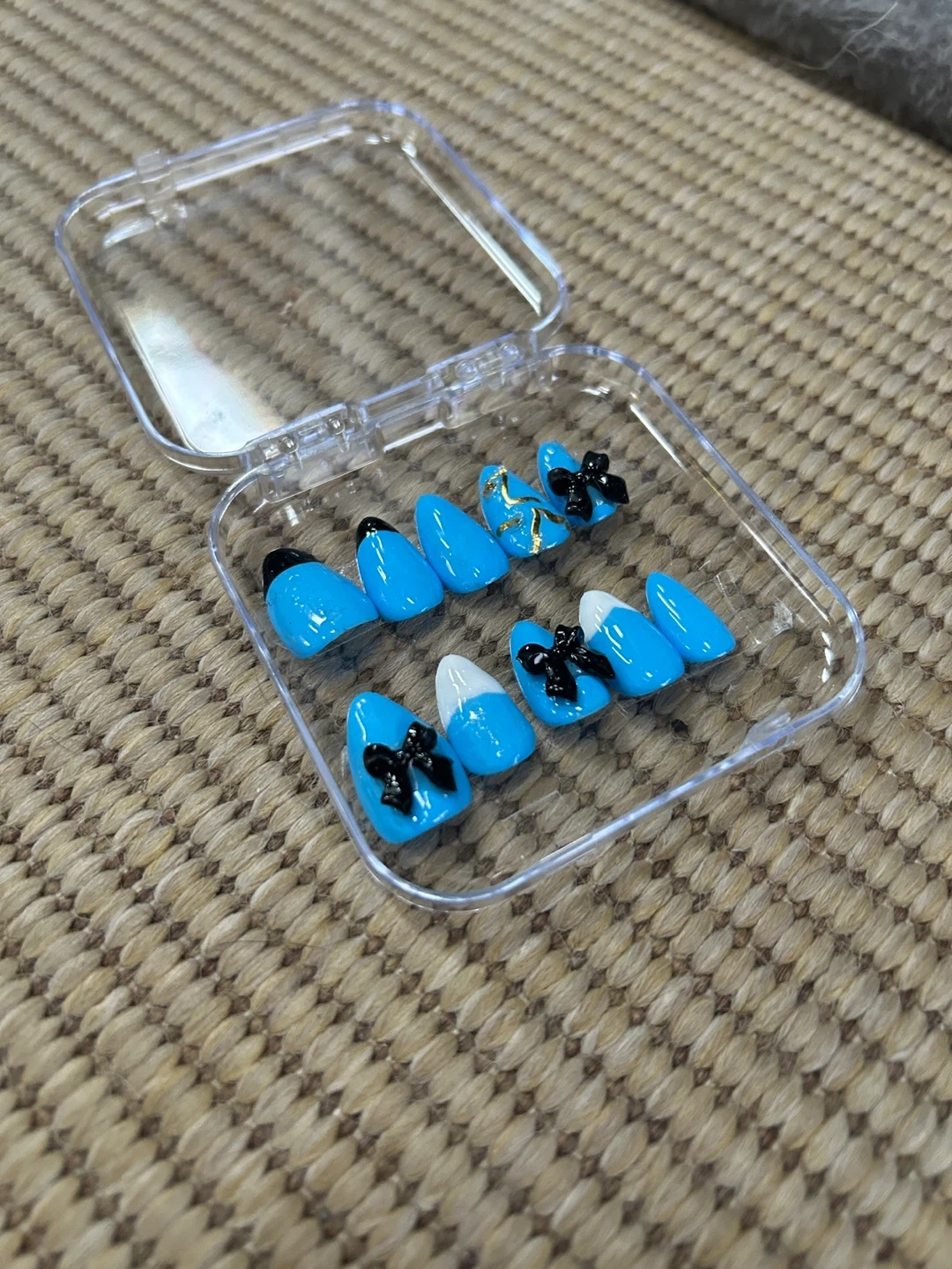 A variety of press on nails in different colours and designs! Perfect for a quick and easy manicure at home. They come in a clear plastic case for easy storage and organization