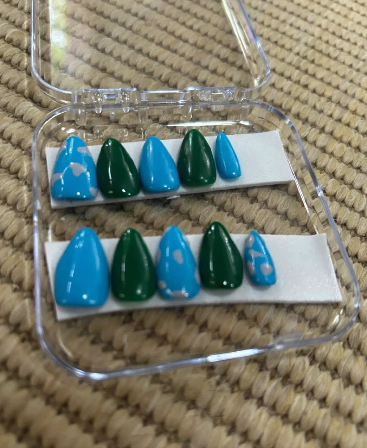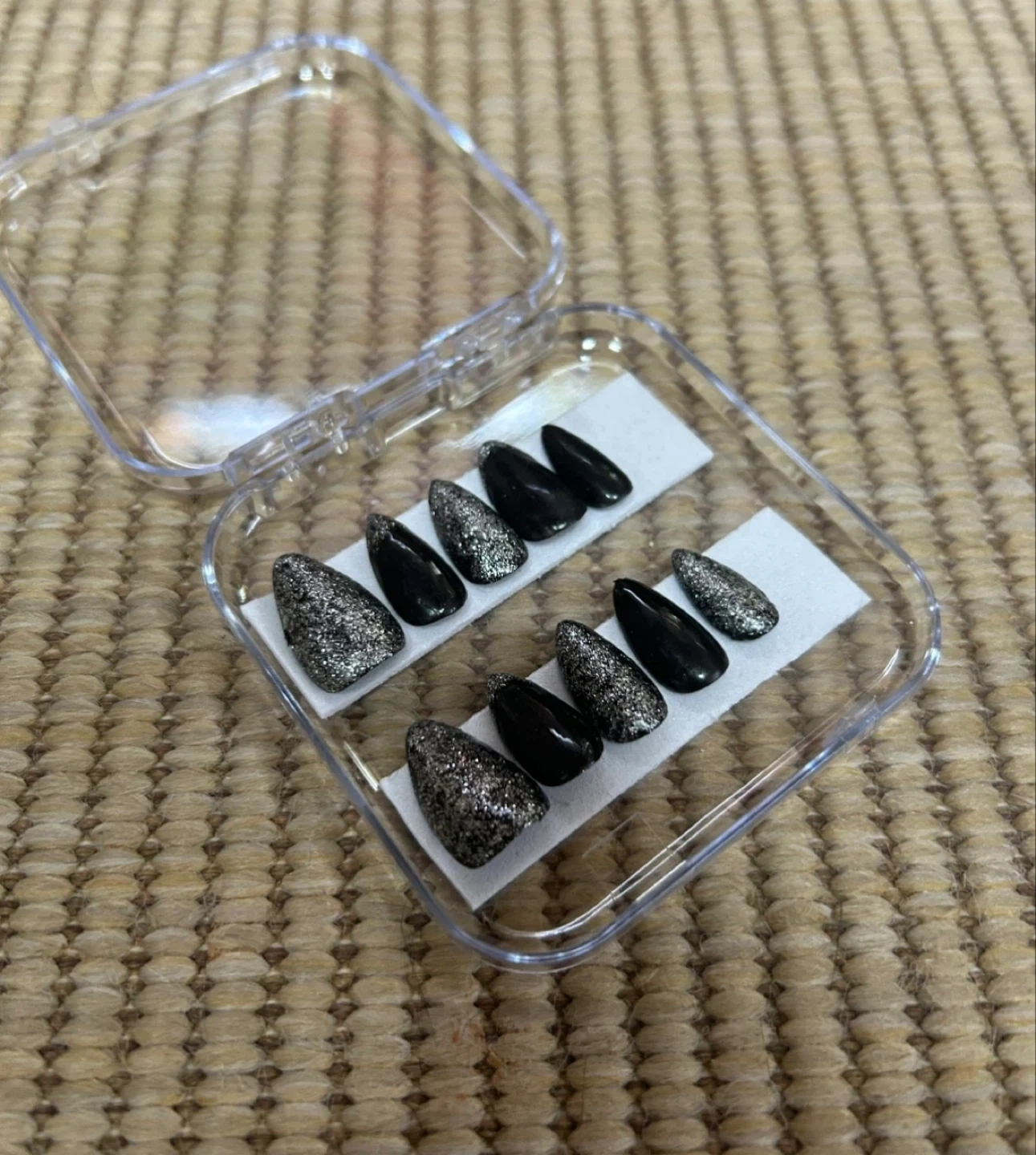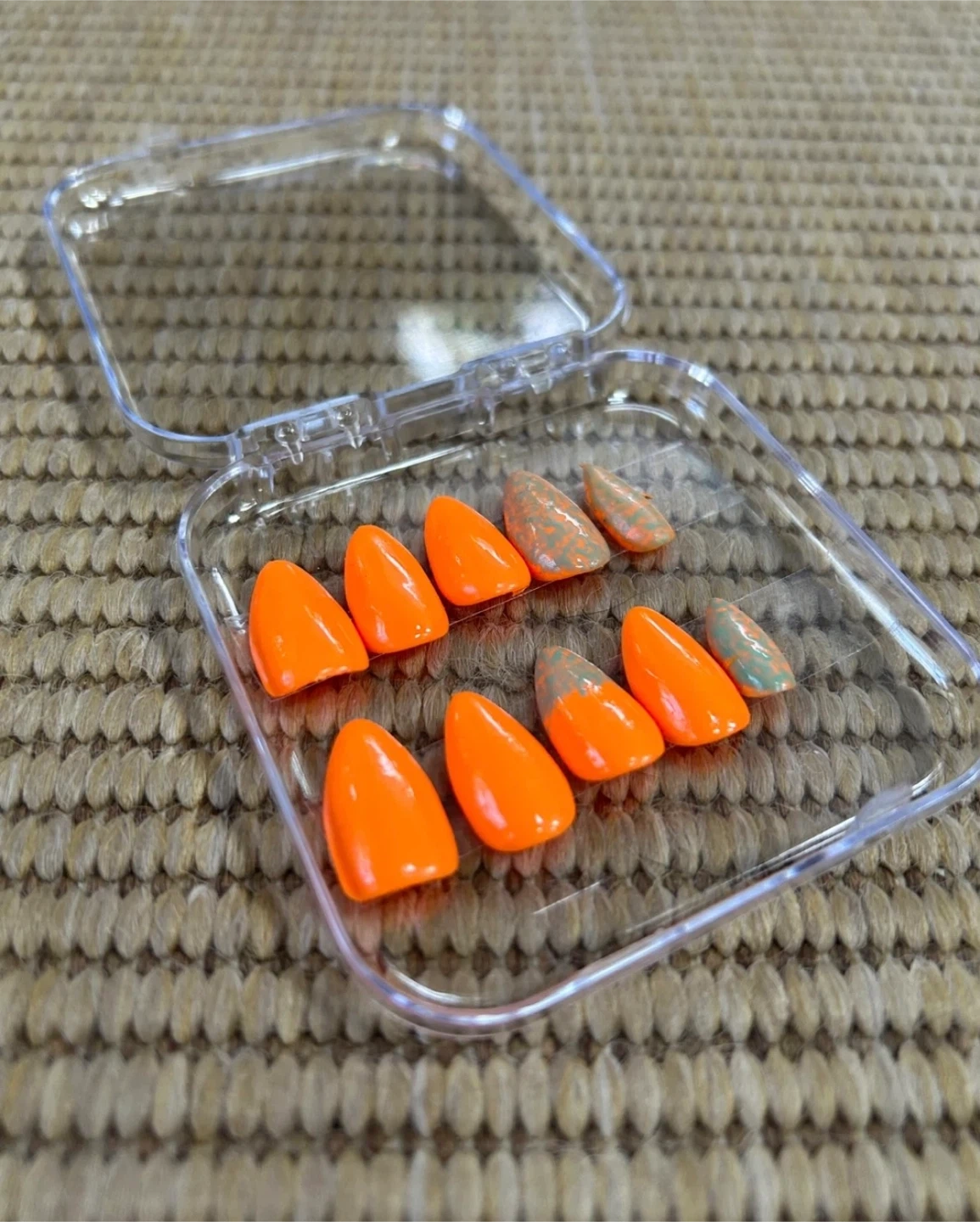 A variety of press on nails in different colours and designs! Perfect for a quick and easy manicure at home. They come in a clear plastic case for easy storage and organization