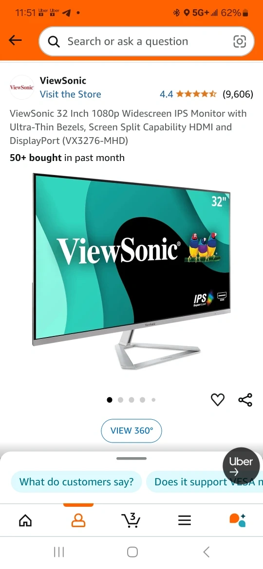 Selling a ViewSonic 32-inch monitor! It's a 1080p widescreen IPS monitor with ultra-thin bezels. It also has screen split capability, HDMI, and DisplayPort (VX3276-MHD). Included in the box are the power cable, HDMI cable, and quick start guide