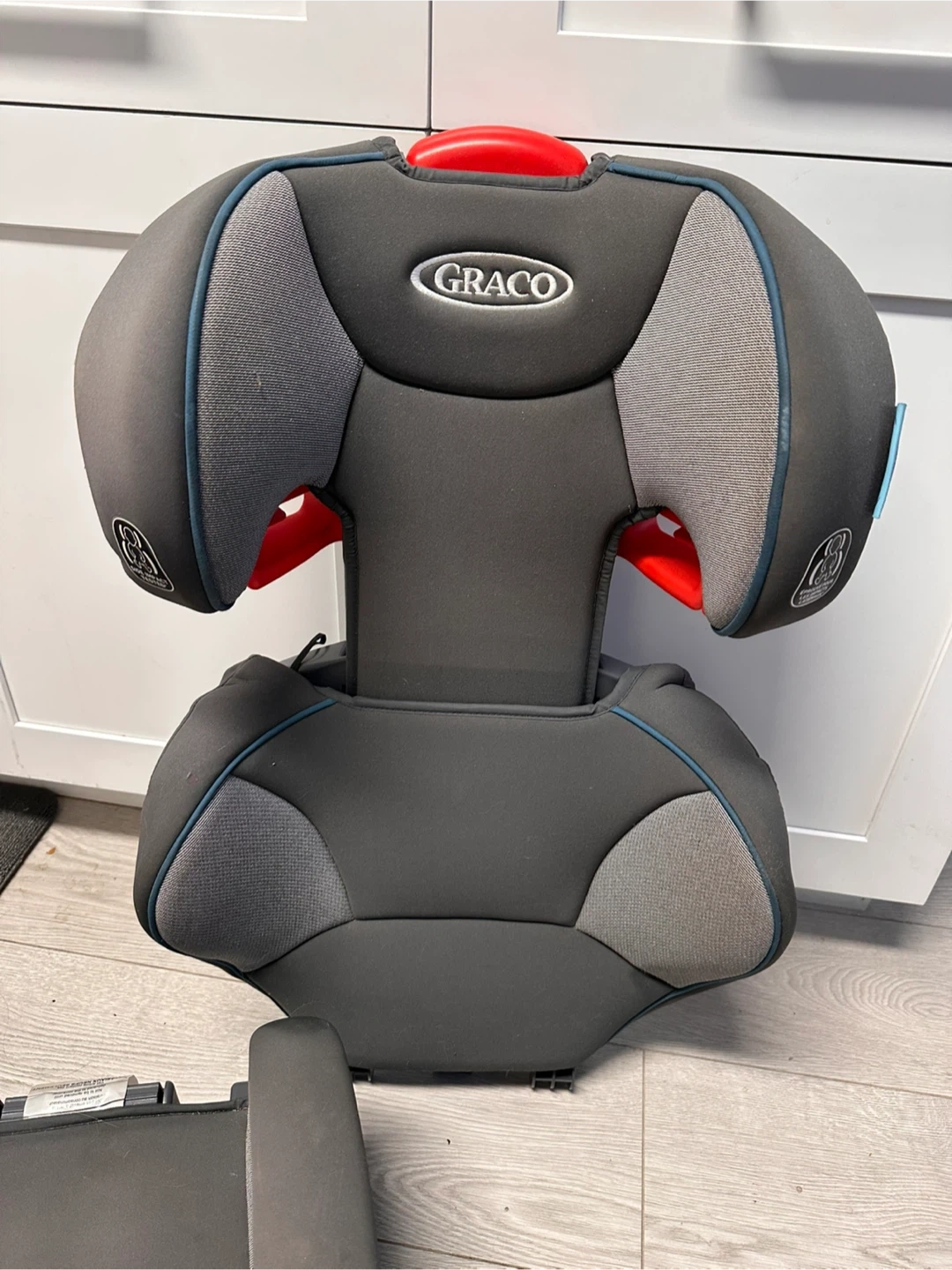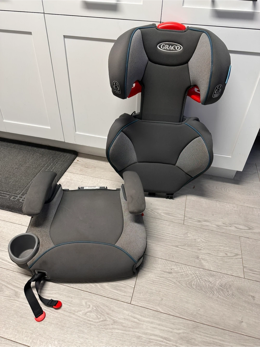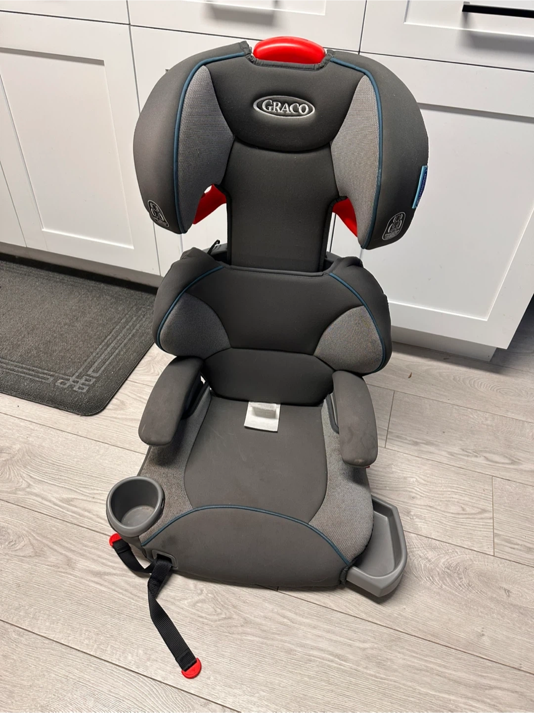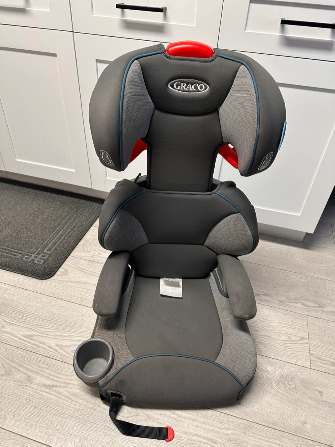 Selling a Graco Turbo Booster LX child car seat, perfect for kids aged 4-10 years old. It's designed for children weighing between 18 and 45 kg (40 and 100 lbs) and who are between 101 and 145 cm (40 and 57 inches) in height. It’s in used condition and ready for its next adventure!
