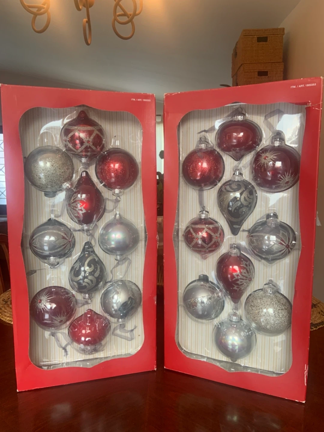 NEW Christmas Ornaments - Red & Silver, Set of 10