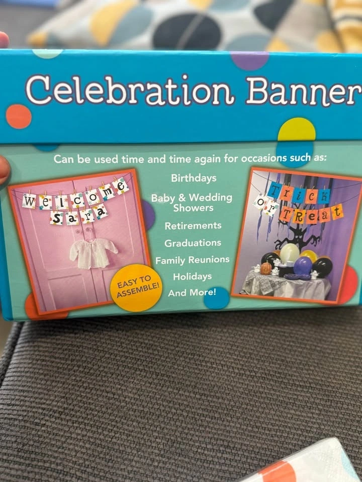 Celebration banner never opened. Cupcake holder never opened and birthday napkins, never opened.
