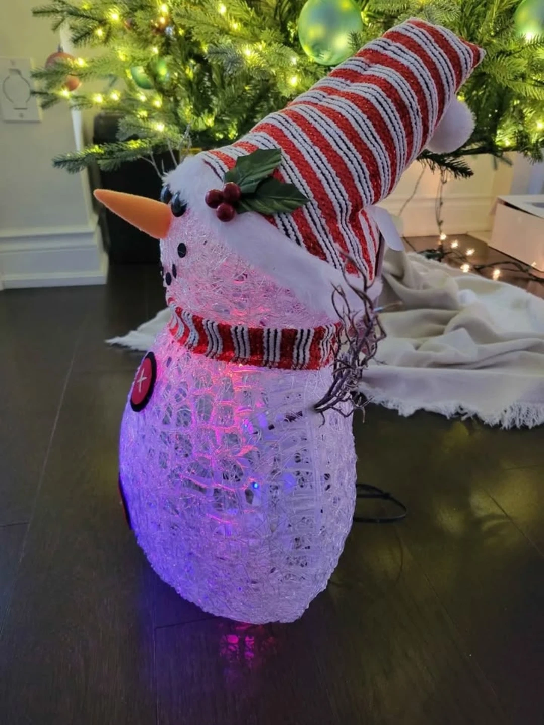 Here's a cute lighted snowman decoration for Christmas! It's in great condition and ready to add some festive cheer to your home