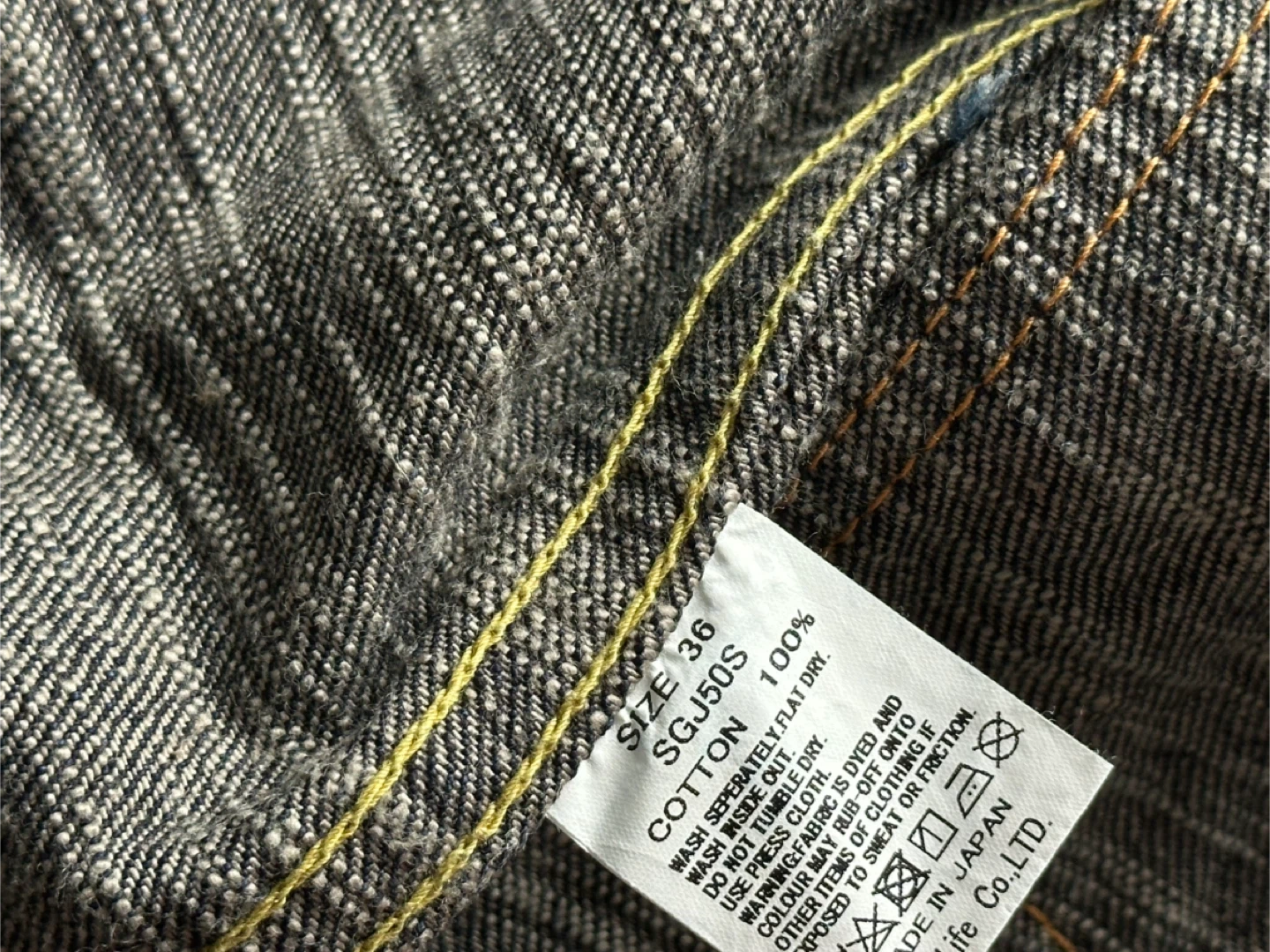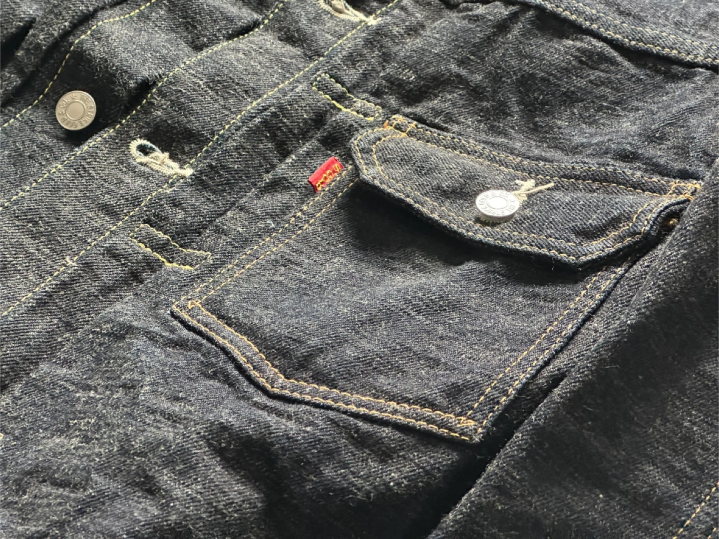 - Material: 15 oz. right-hand twill cross slub Japanese selvedge denim
