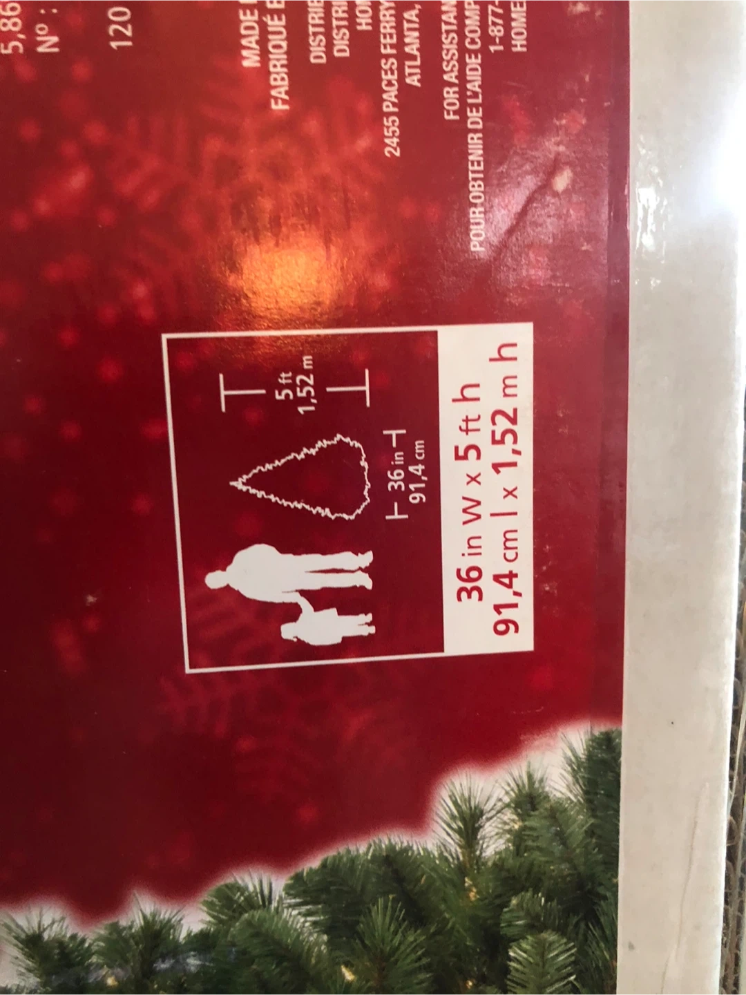 Selling a 5 ft pre-lit Fraser Pine full tree from Home Accents Holiday. It has 566 tips with 200 clear lights and is 36 inches in diameter at the base. It's also flame-resistant and for indoor use only. Comes in its original box
