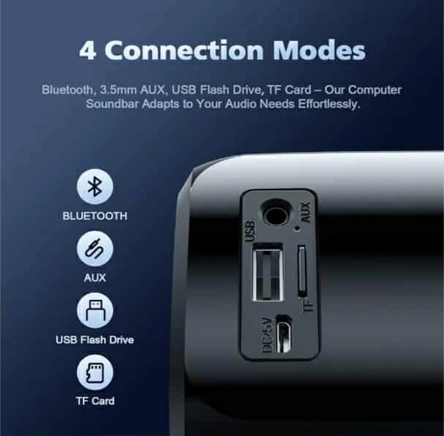 Selling a brand new BLUEDGEE computer soundbar, model SD20! It comes with its original box and all the included components. This soundbar features Hi-Fi sound quality and multiple connection modes like Bluetooth, 3.5mm AUX, USB Flash Drive, and TF Card for effortless audio control