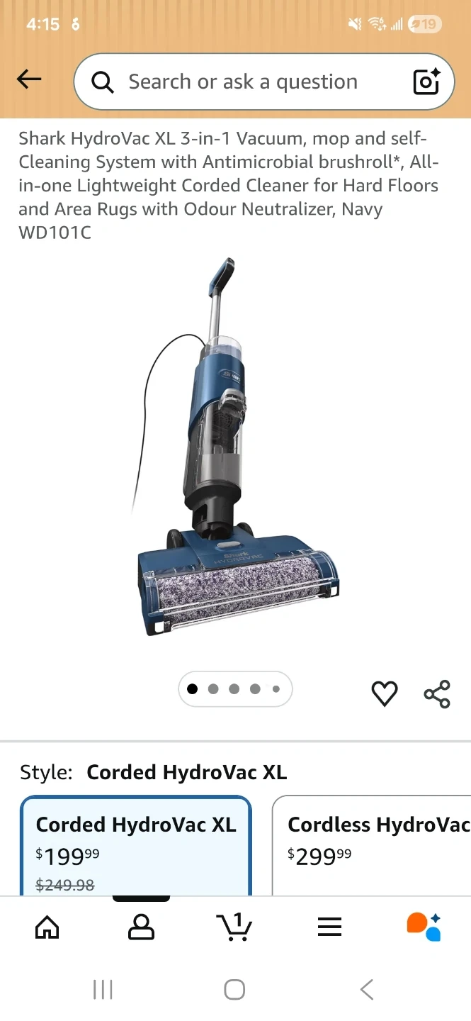 Shark HydroVac XL 3-in-1 Vacuum, mop and self-Cleaning System with Antimicrobial brushroll*, All-in-one Lightweight Corded Cleaner for Hard Floors and Area Rugs with Odour Neutralizer