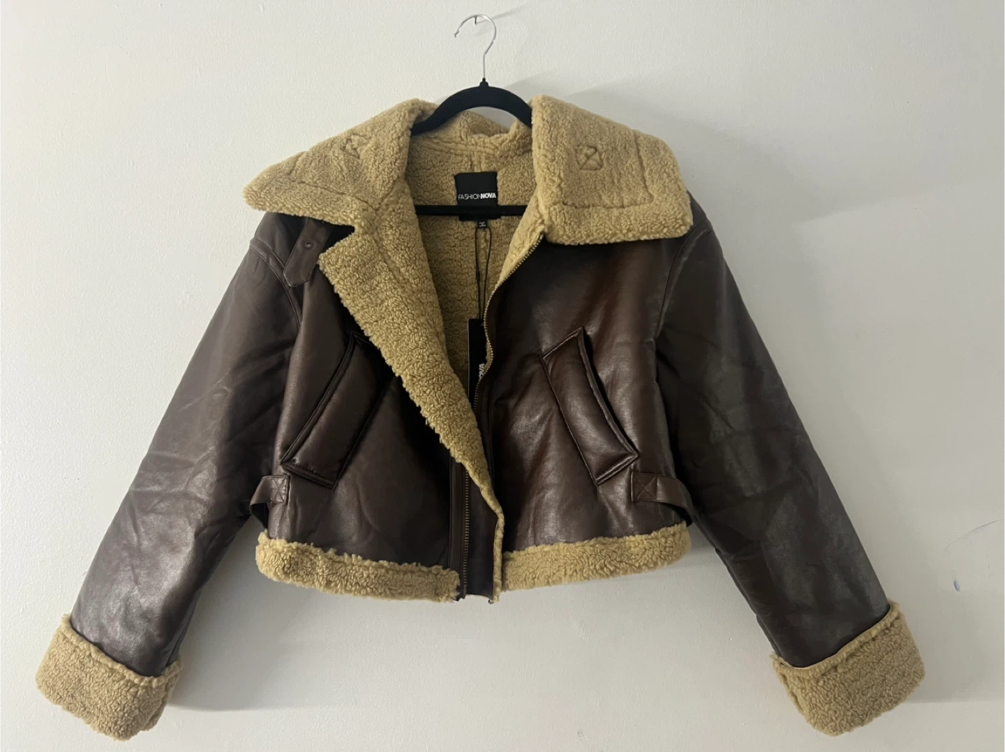 Selling a Fashion Nova 'Tatum Faux Leather Jacket' in size small (fits like oversized))