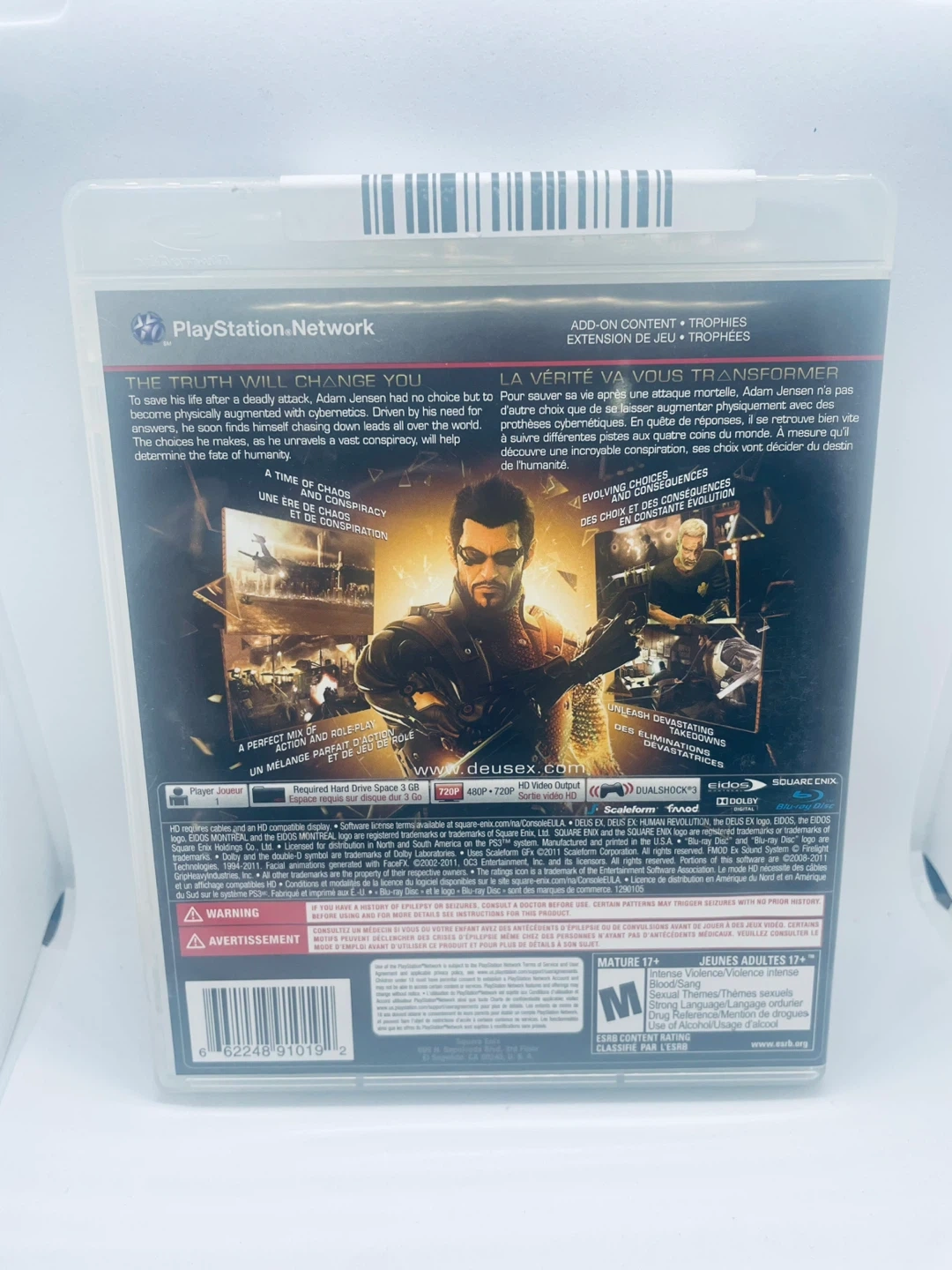 Selling Deus Ex: Human Revolution for the PlayStation 3. The game is rated M for Mature 17+ by the ESRB
