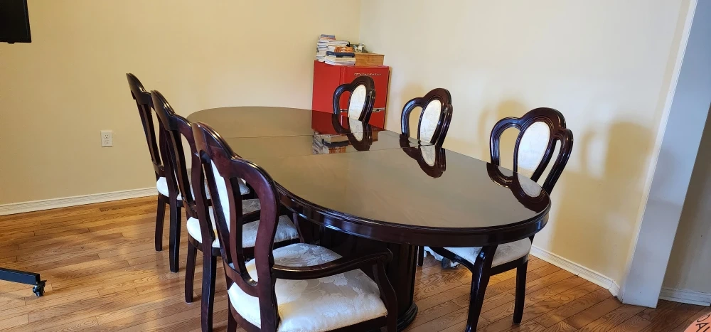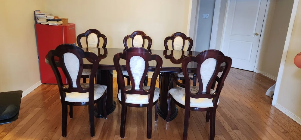 Also available, matching 6 chairs dinette set, all mohagany wood, with exentendable dinning table, set available at $650.