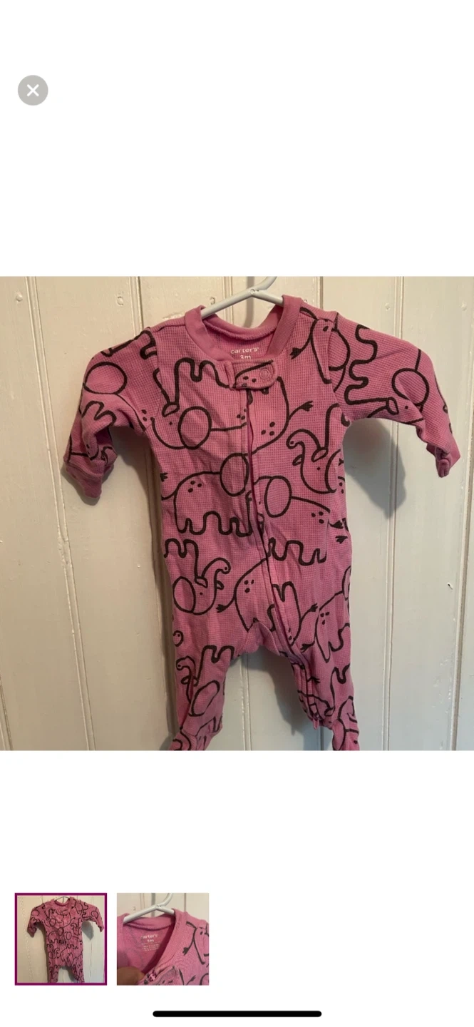 Carters brand. Zip up waffle knit sleeper. Pink elephant print. Size 3m. Brand new condition