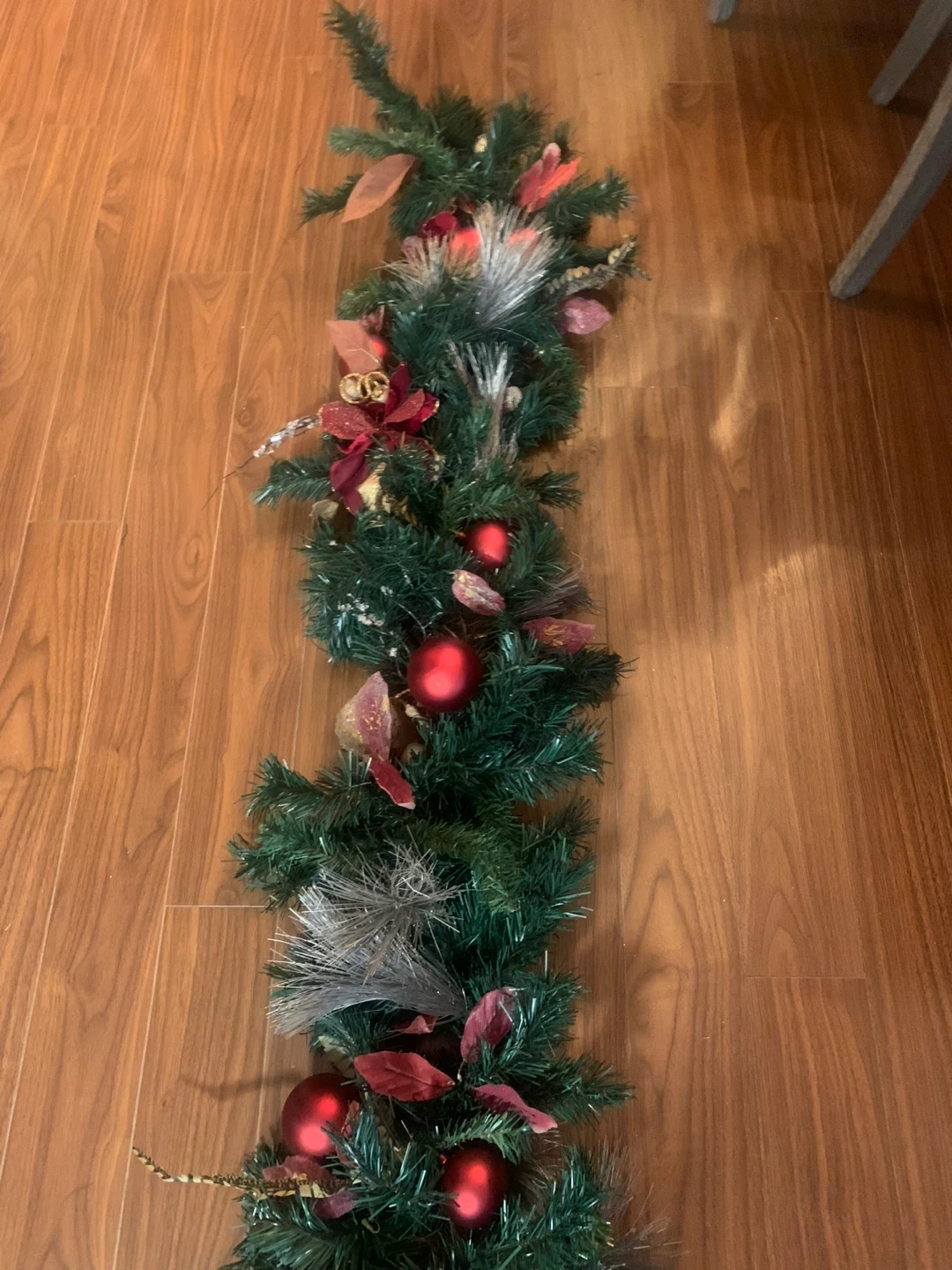 Selling a beautiful Christmas garland to add some festive cheer to your home! It features lovely red ornaments and decorative accents. Perfect for draping across a mantel, banister, or doorway to create a warm and inviting atmosphere for the holidays