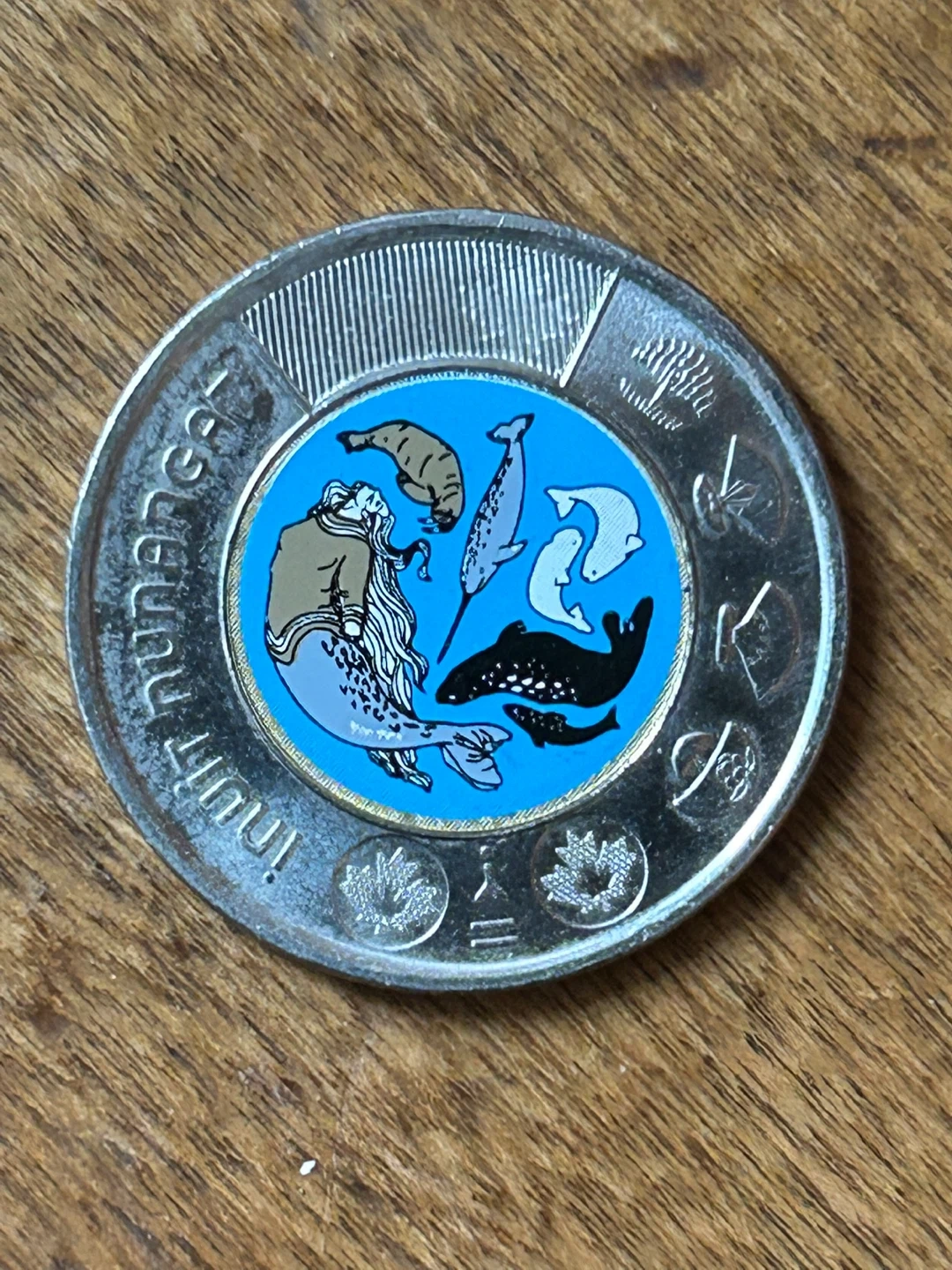 Toonie $2 coin 2024 Canada Inuit Nunangat Coloured money
