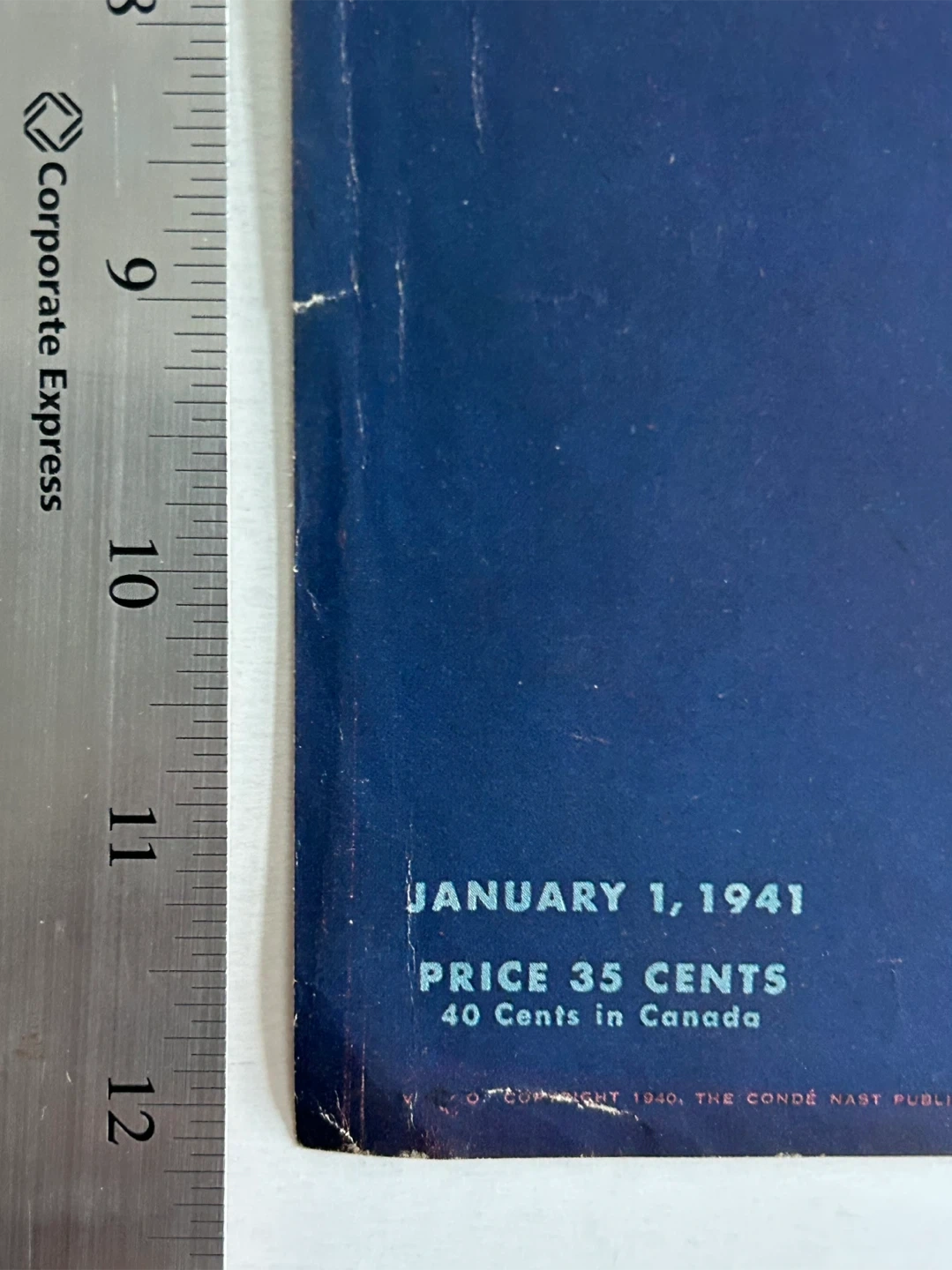 1941 vintage cover vogue showing woman skiing Winter sports women female ad art illustration photograph